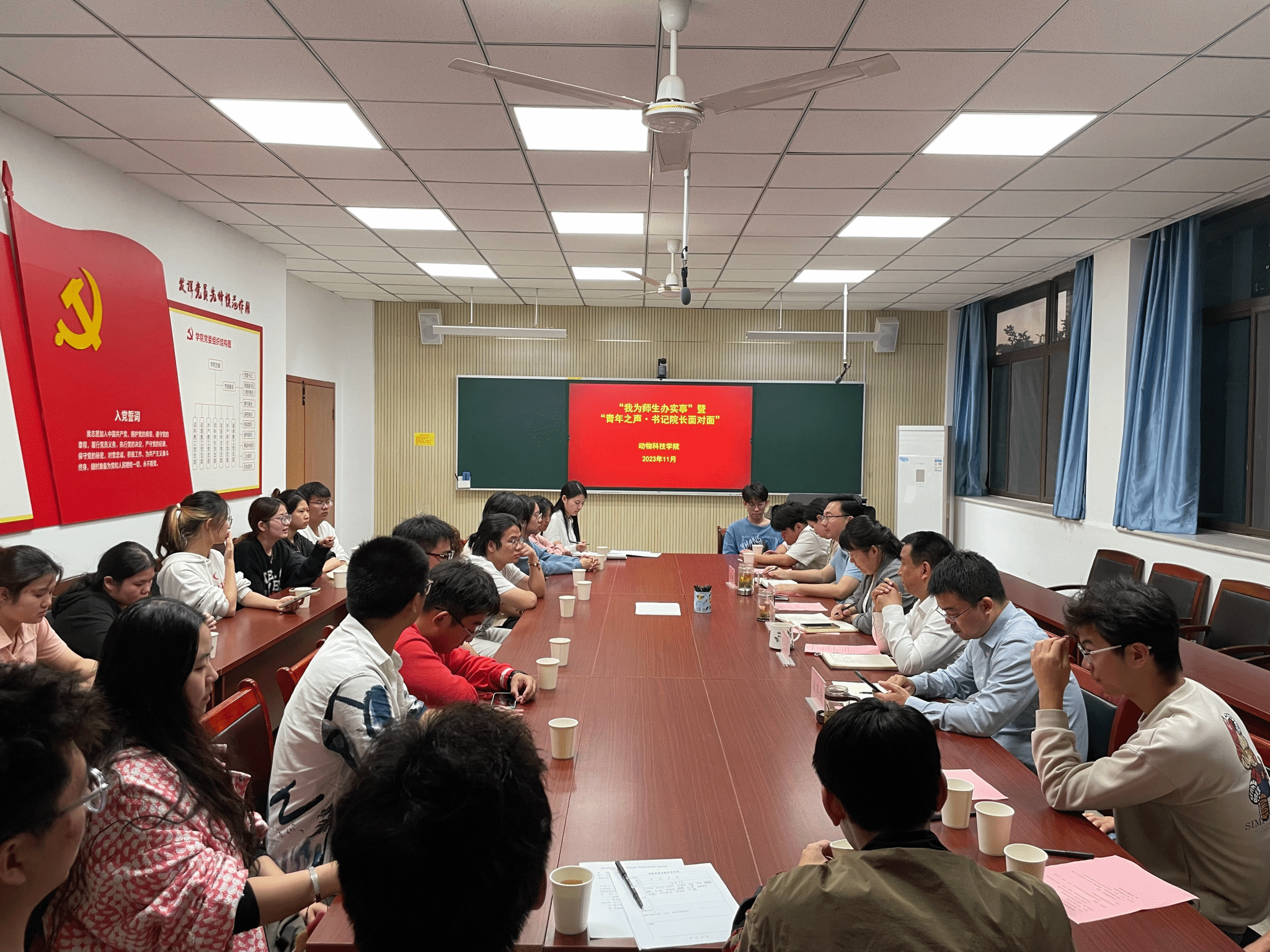 本网讯 为了解学生的学习情况和生活近况,切实帮助学生解决实际问题。11月1日下午动物科技学院召开“我为师生办实事”暨“青年之声·书记院长面对面”座谈会。学院党委副书记(主持工作)沈兆梅、院长张子军、副院长涂健、副院长凌英会出席会议。会议由学院党委副书记章巍主持。
