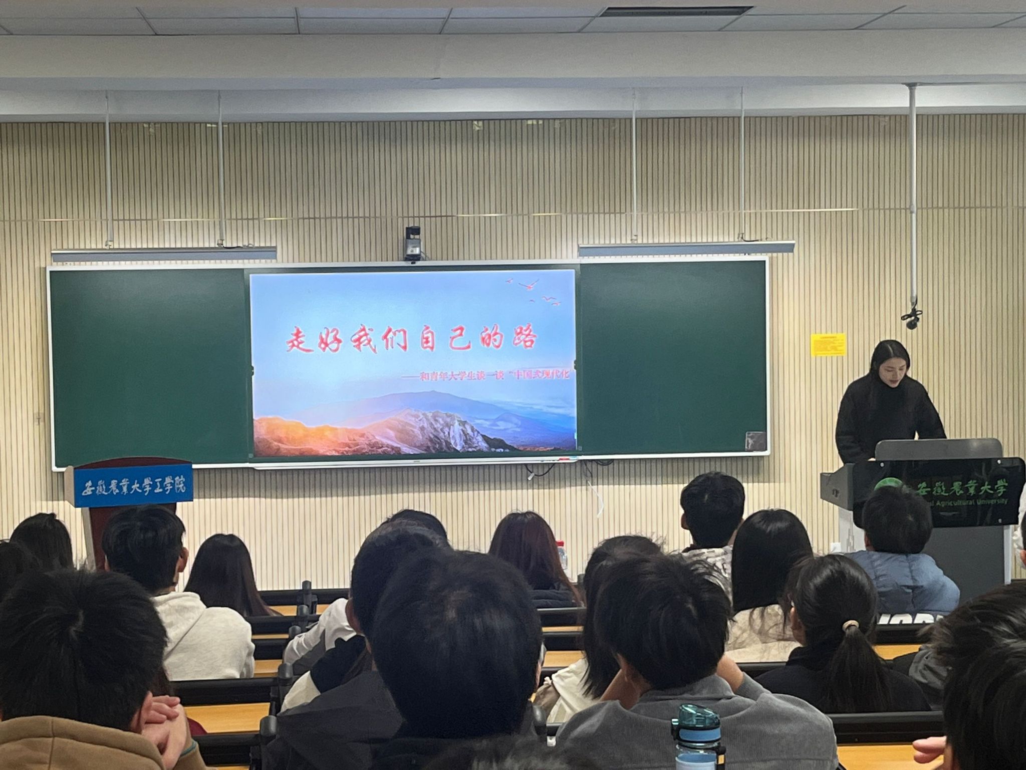 会上,校青年宣讲团成员张芸溪领学《农强方能国强——习近平总书记两会的三农关切》主题团课。宣讲结束后,与会成员共同学习《走好我们自己的路——和大学生谈一谈中国式现代化》,围绕中国梦的内涵共同探讨学习中国式现代化。