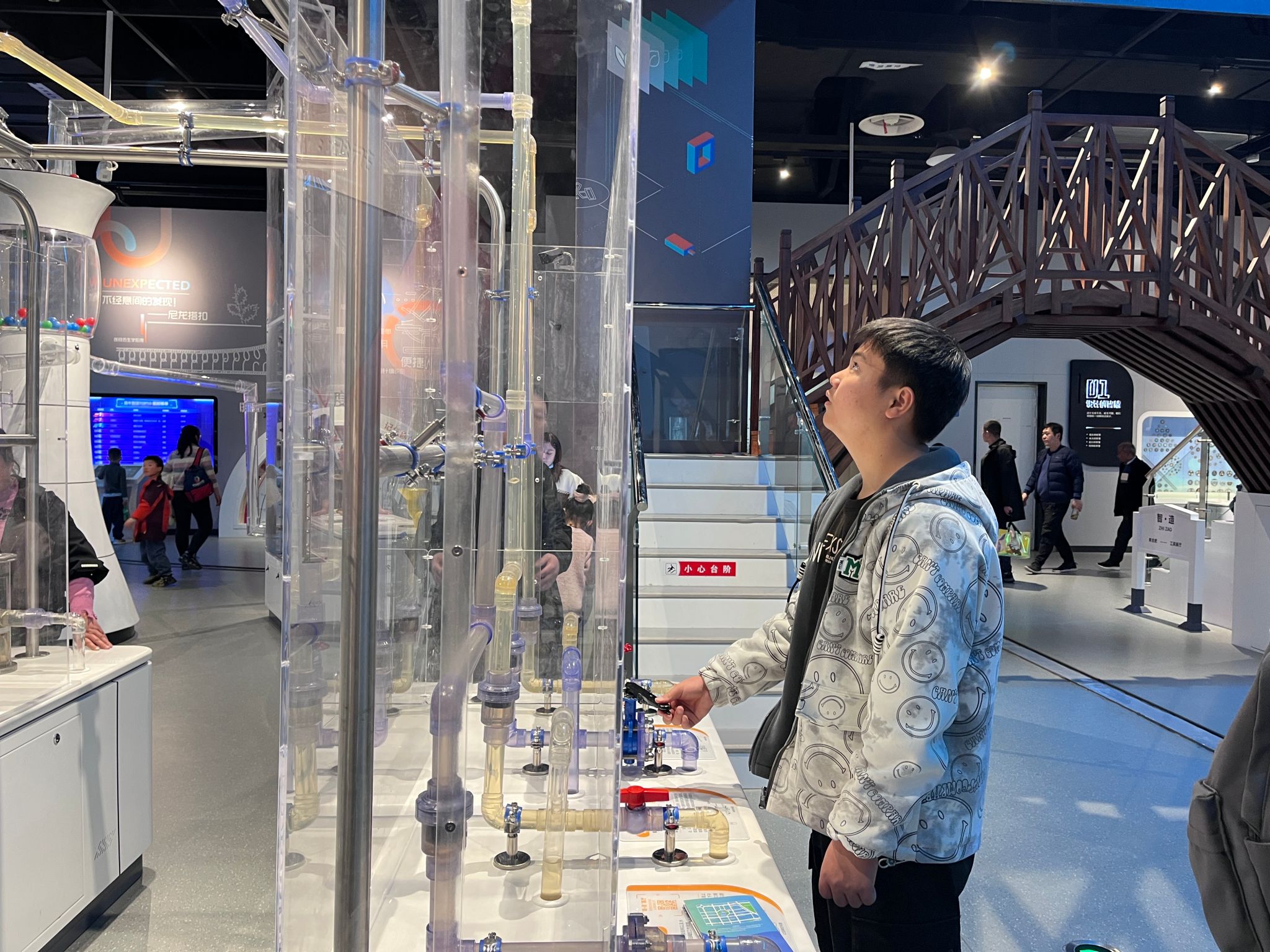 同学们先后参观了自然展厅、能量展厅、智造展厅等多个展区。在“智造”展厅,展现科技带给人类的便利和智慧创造的结晶。同学们亲身体验了虚拟现实、人工智能等前沿技术,了解到现代农业生产中的各种高科技设备,进一步感受到科技魅力与人类智慧之巧,让同学们对农业科技产生了浓厚的兴趣。