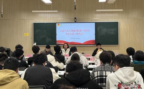本网讯 12月1日,信息与人工智能学院第一次学生代表大会在信智楼305会议室胜利召开。学院党委副书记、纪委书记李南飞出席会议,学院团委相关负责老师及学生代表等90余人参加了会议。