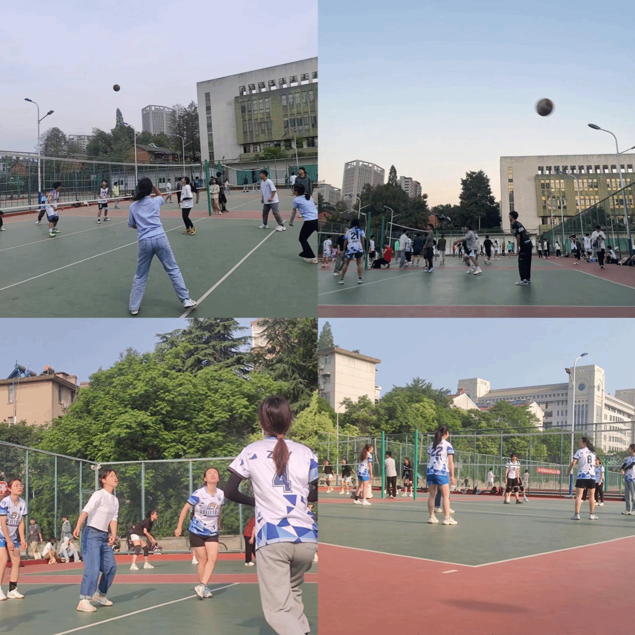 随着清脆的哨声响起,比赛正式拉开帷幕,队员们发扬着“更高、更快、更强”的体育精神,以尊重对手、尊重比赛的态度全力以赴的对待每一球。比赛中,他们各施绝技,无论是发球、拦网还是进攻,都为场下观众呈现了一场难得的视觉盛宴。队员们矫健敏捷的步伐、努力拼搏的身影、团结奋斗的汗水,不仅展现出了资环学子的青春风采,更赢得了场下围观同学的阵阵喝彩。