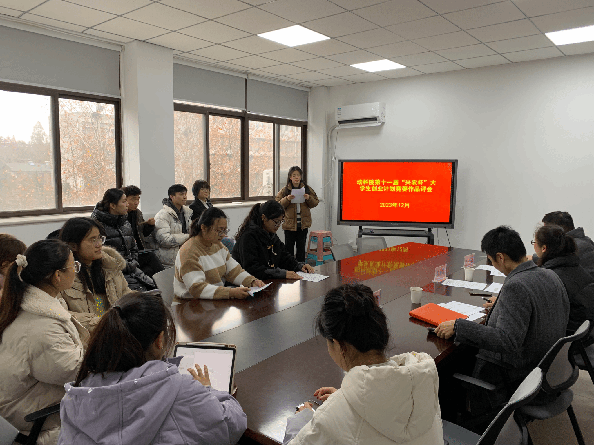 本网讯 12月15日下午,动物科技学院于308会议室举行了第十一届“兴农杯”大学生创业计划竞赛院级初赛答辩会。此次答辩会特别邀请动物医学系王勇老师、动物科学系陈丽娟老师、水产养殖学系张焱鹏老师担任评委,各团队答辩代表参加,会议由学生会科创部成员陈冉主持。
