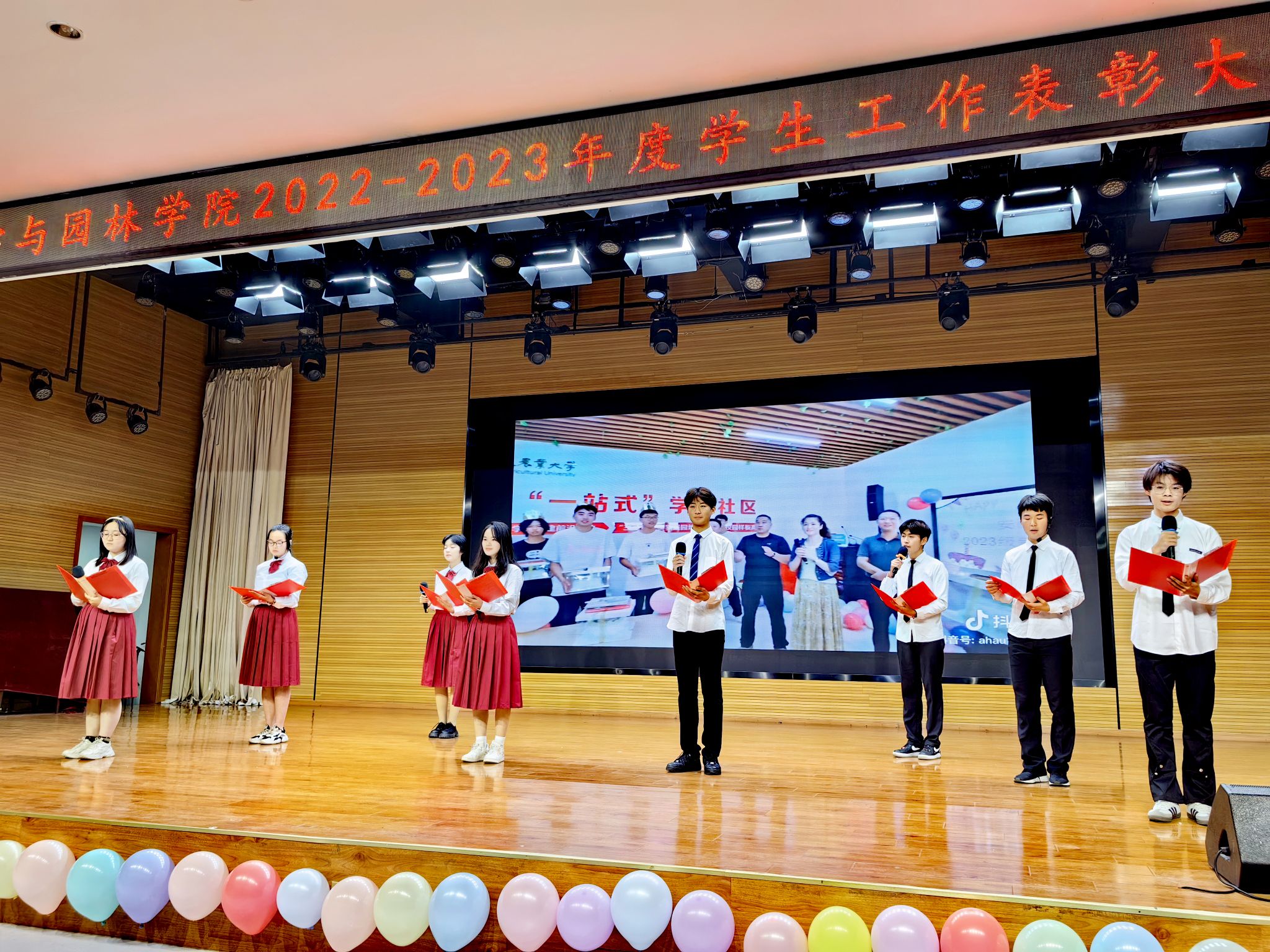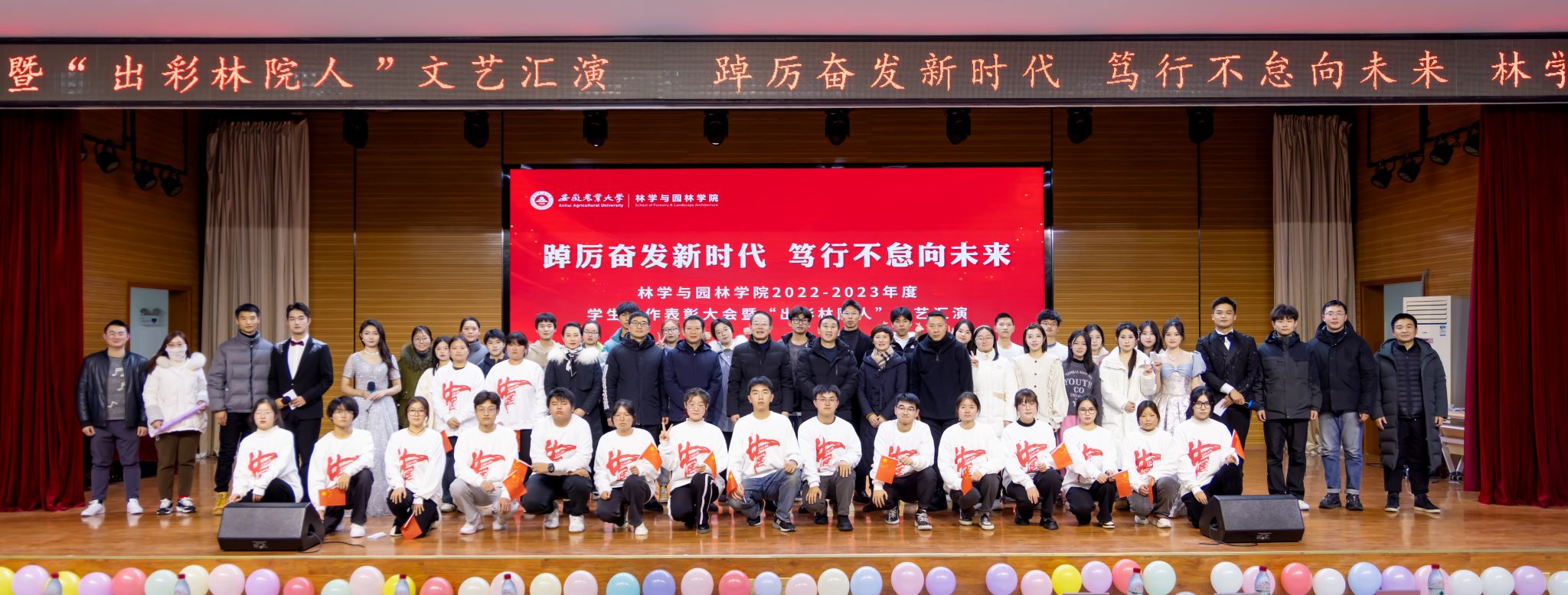 本网讯 12月19日晚,林学与园林学院“踔厉奋发新时代,笃行不怠向未来”2023年度学生工作总结表彰暨“出彩林院人”文艺汇演在欣苑四楼学生活动中心举行。党委宣传部、研工部、学工部、团委等单位负责人出席并颁奖,学院班子成员、各系部教师、学生代表300余人共同参会。