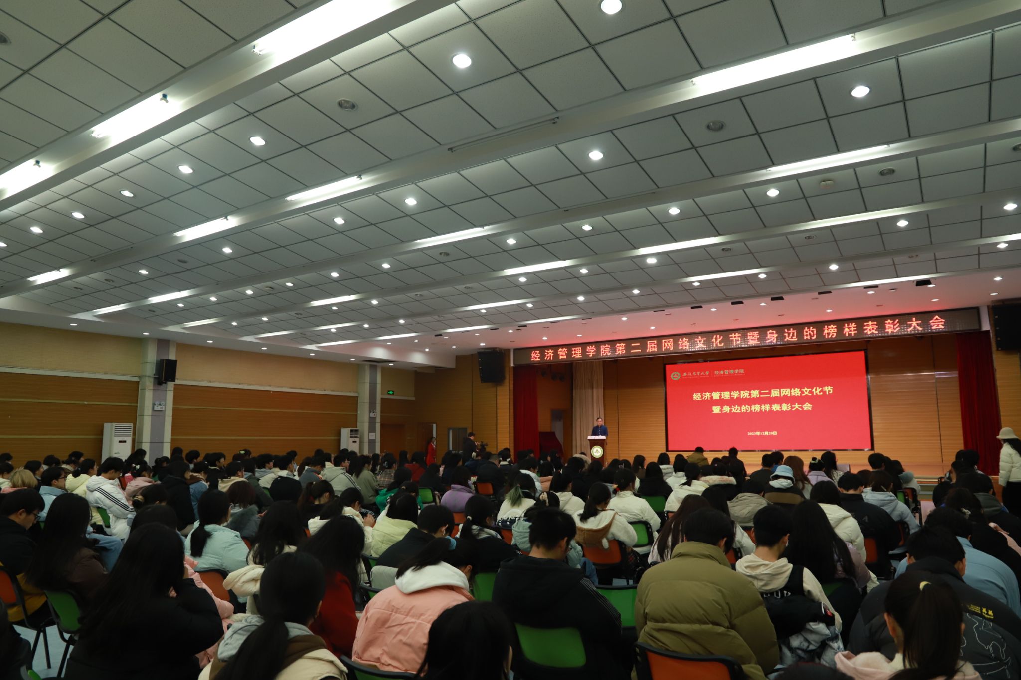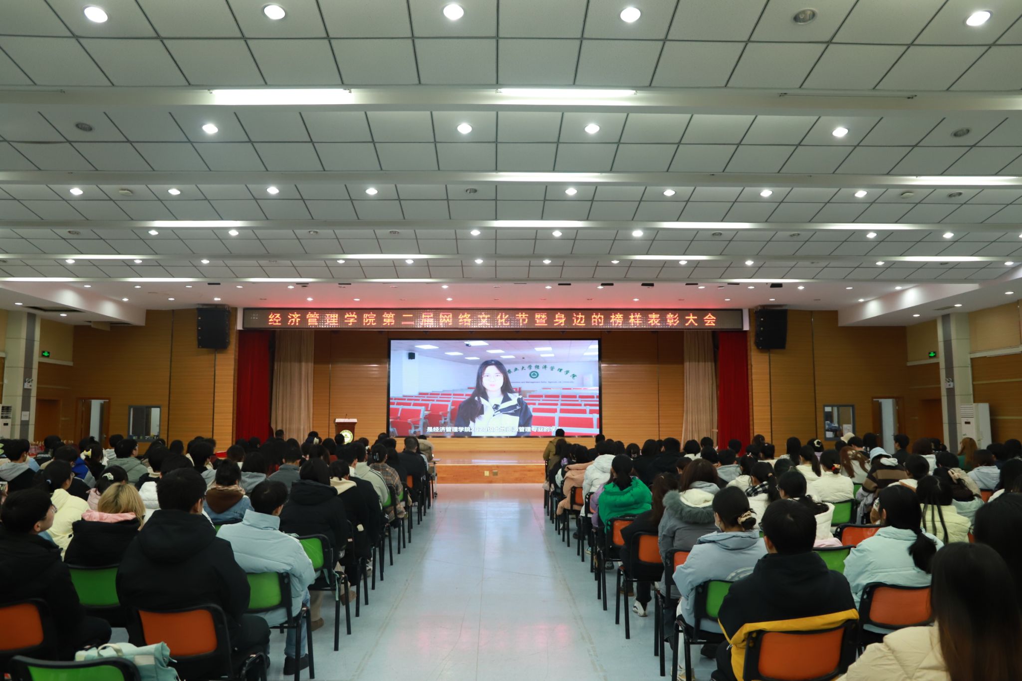 本网讯 12月20日下午,学校小礼堂里坐满了前来参加经济管理学院第二届网络文化节暨身边的榜样表彰大会的师生。与往常表彰大会会场里一片热火朝天的景象略有不同,300多人的现场格外安静。