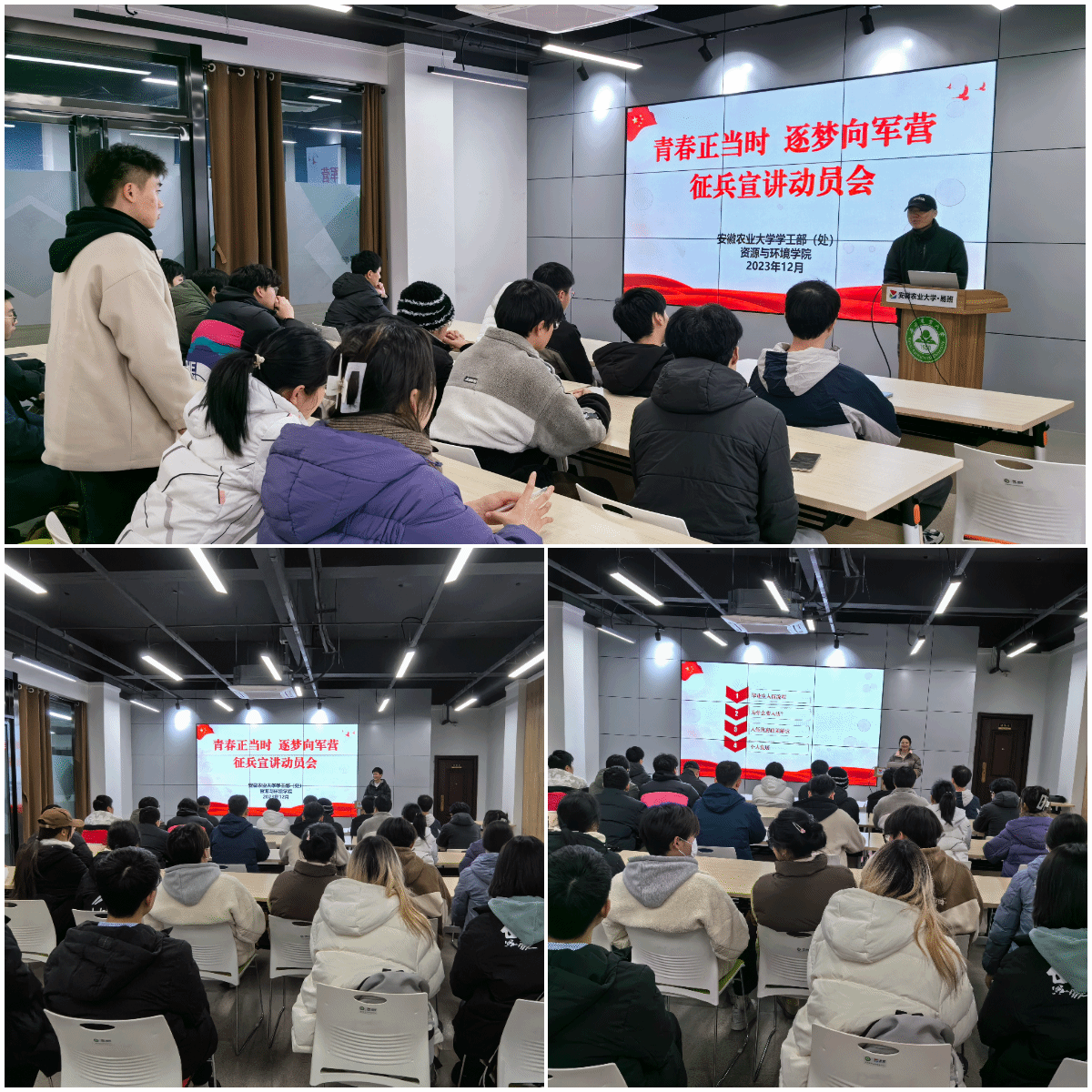 本网讯 “国无防不立,民无兵不安”,为切实做好2024年春季征兵工作,积极动员适龄青年踊跃报名参军,输送优秀青年投身部队,12月21日晚,资源与环境学院在校易班发展中心举行“青春正当时,逐梦向军营”征兵宣传动员活动,学院国防教育工作负责人、退伍大学生士兵代表以及有入伍意向的高年级学生近60人参加。