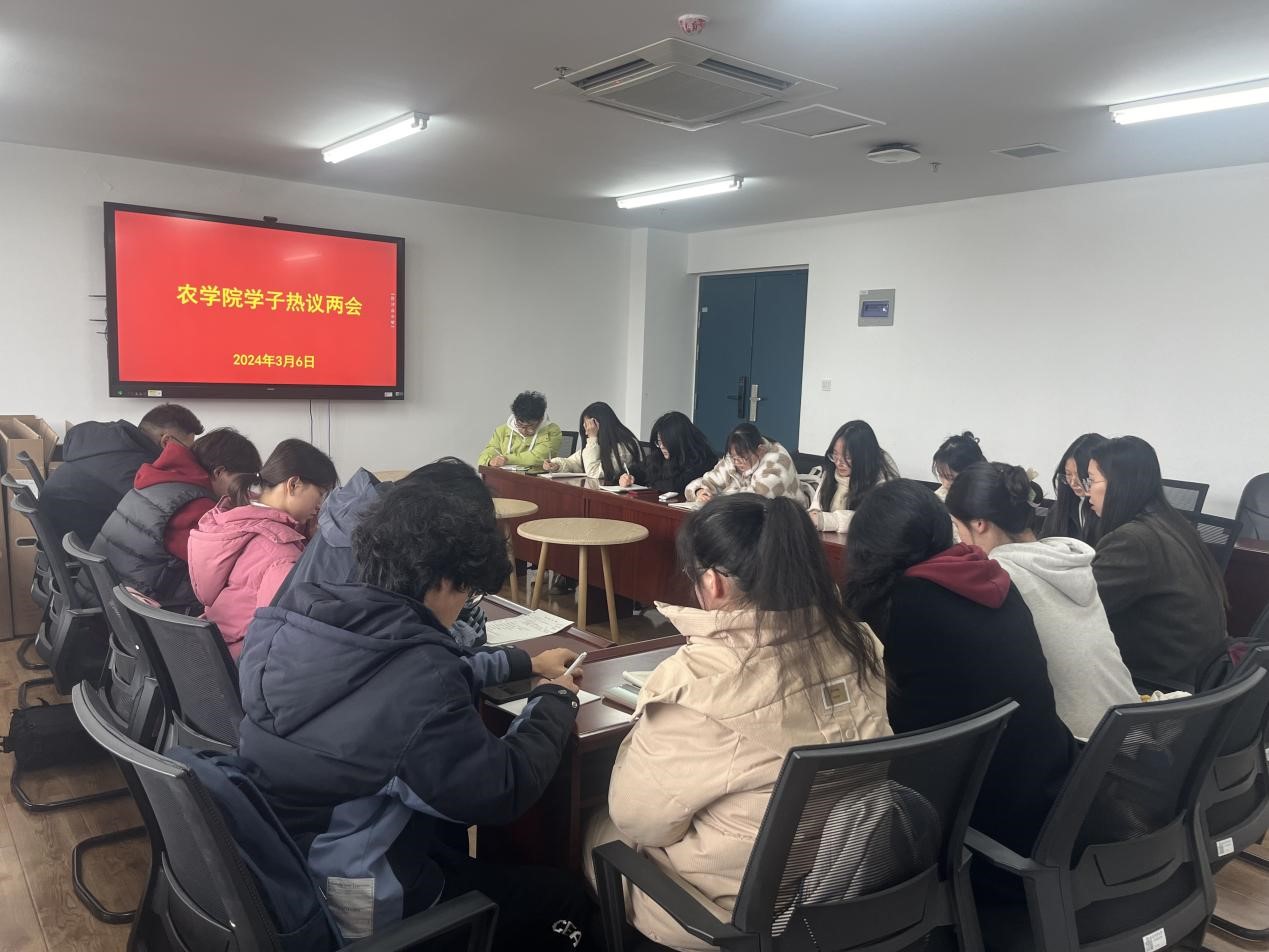 会议集中学习了李强总理在第十四届全国人大二次会议上的《政府工作报告》。在深入学习了政府工作报告的内容之后,团员青年们更加深刻地认识到党和政府始终把人民利益放在首位,也看到了党和国家领导人为解决民生问题的不懈努力,听到了政府为保障民生和就业的具体政策措施。两会期间,学院团学青年密切关注两会动态,热议两会精神,积极发表自己对《政府工作报告》的感想。学院号召同学们要厚植爱农情怀,练就兴农本领,勇担强农兴农使命,践行好大农业观、大粮食观,扎实推进乡村全面振兴。