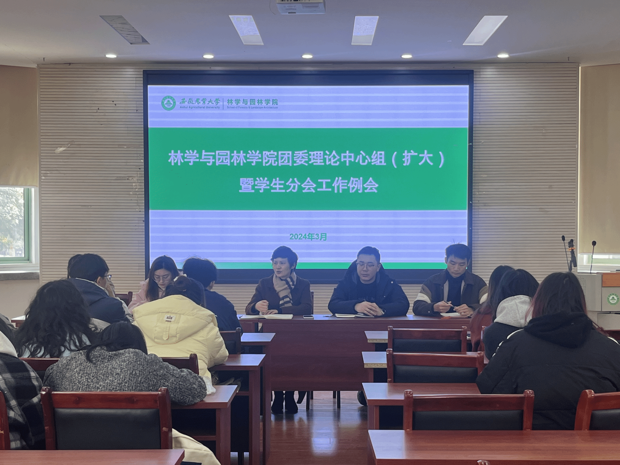 本网讯 3月7日中午,林学与园林学院在林学楼二楼报告厅召开本学期团委理论学习中心组(扩大)暨学生分会工作例会。学院党委副书记夏利明、学院相关负责老师、团委委员及学生分会全体负责人参加会议。