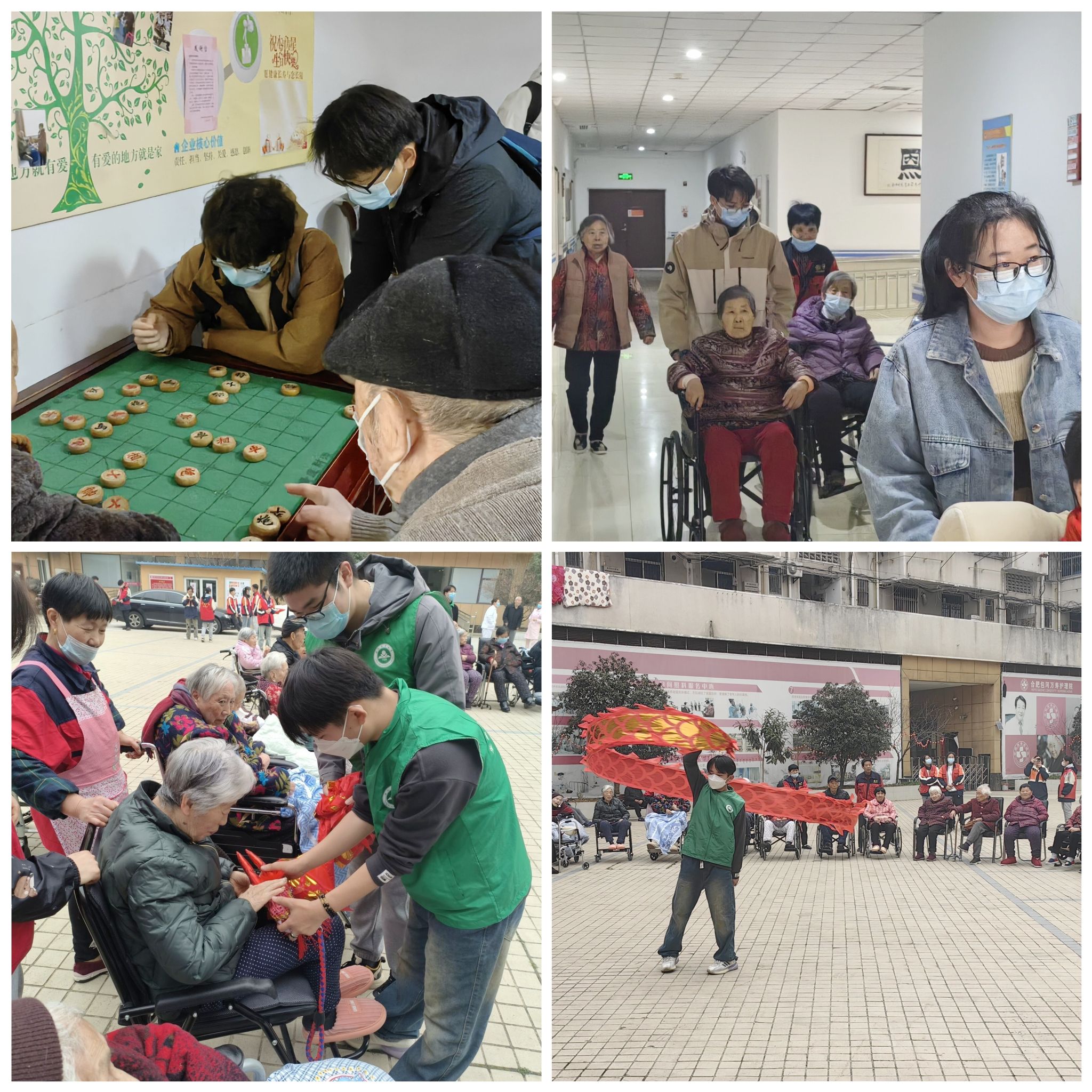 结伴走进敬老院,志愿服务献温暖。志愿者们帮助老人们叠被子、剪指甲,陪着老人们一起晒太阳、下象棋,还为他们准备了彩带龙表演,舞蹈结束之后由舞者将彩带龙的龙头交由老人们抚摸,意在让老人沾染龙气,以祝福老人们身体健康。在志愿者们的陪伴下,敬老院里充满了欢声笑语、满满温情。