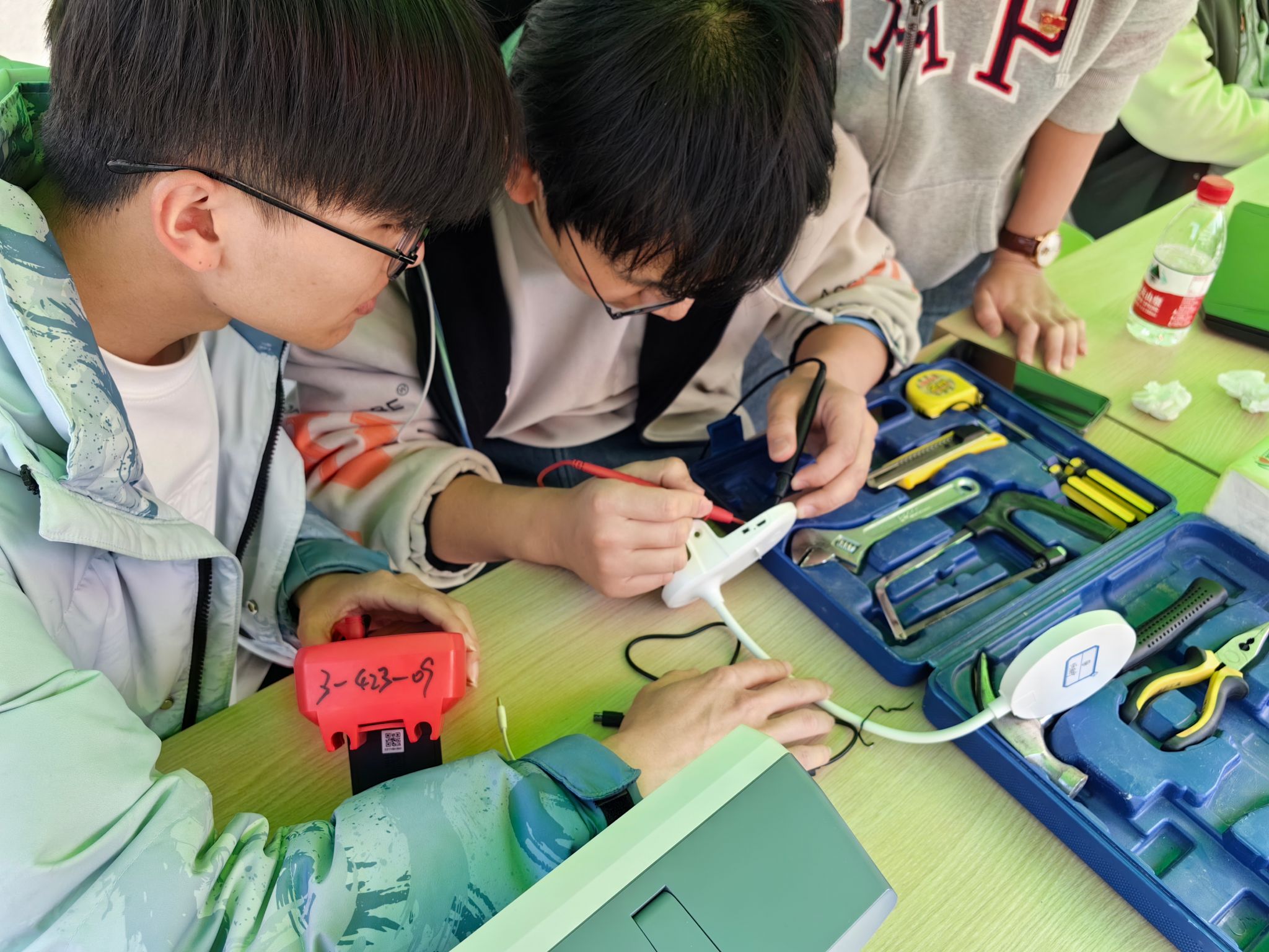 活动现场,同学们按照既定安排对送修电器设备进行信息登记、收储整理、排查检测和保养维修,真正将所学的知识技能转化为解决实际问题的对策和能力,切实做到学以致用、学有所用,用以促学、用学相长。参与活动的师生在休息期间开展了座谈交流,围绕学业成长、专业前景、就业渠道等大学生们关心的话题进行热烈讨论,大家时而交流理论知识,时而探讨人生理想,时而品谈生活轶事,现场氛围温暖轻松。