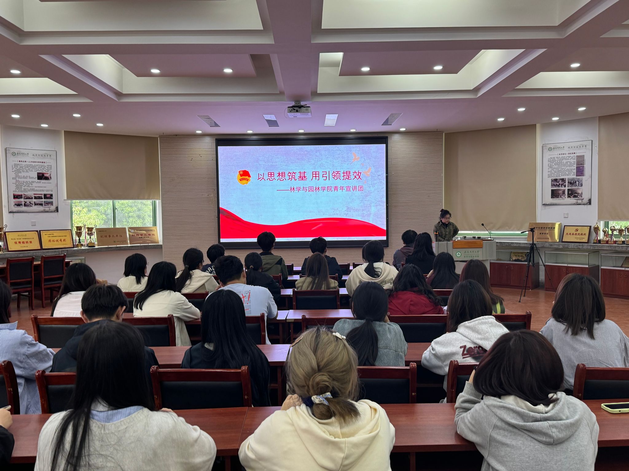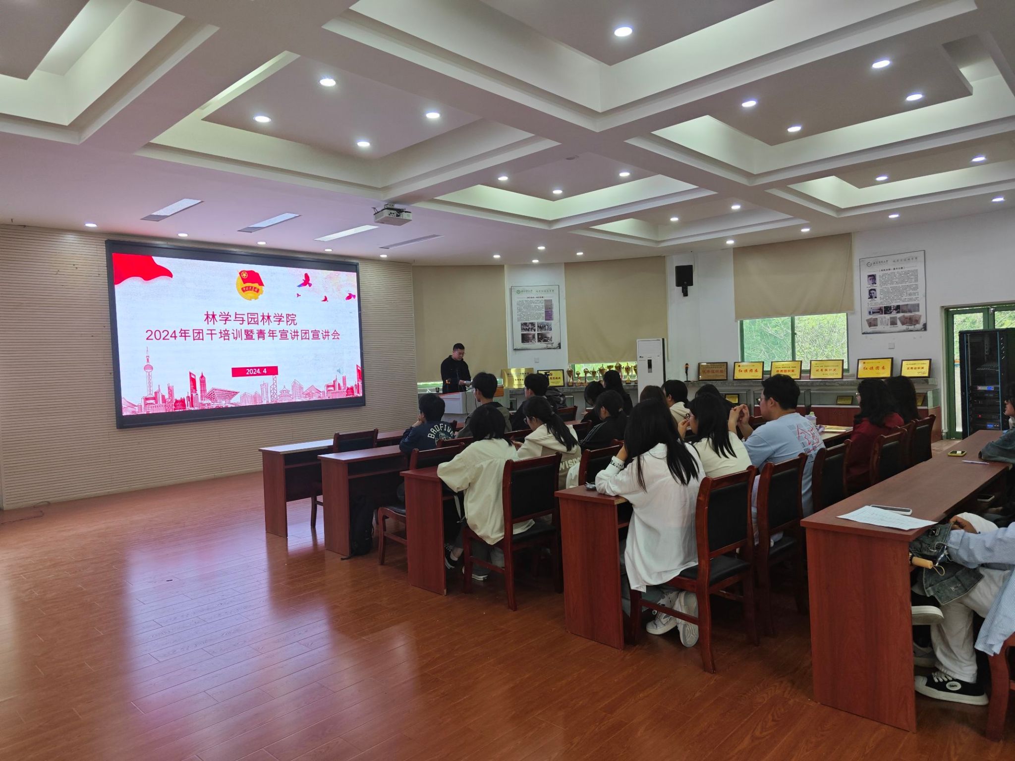 本网讯 4月12日中午,林学与园林学院在林学楼二楼报告厅召开团干培训暨青年宣讲会。学院团委老师、学院团干培训班成员与院青年宣讲团同学参加会议。此次会议就团干工作的基本要求和必备技能,应具备的素质和能力开展培训宣讲。