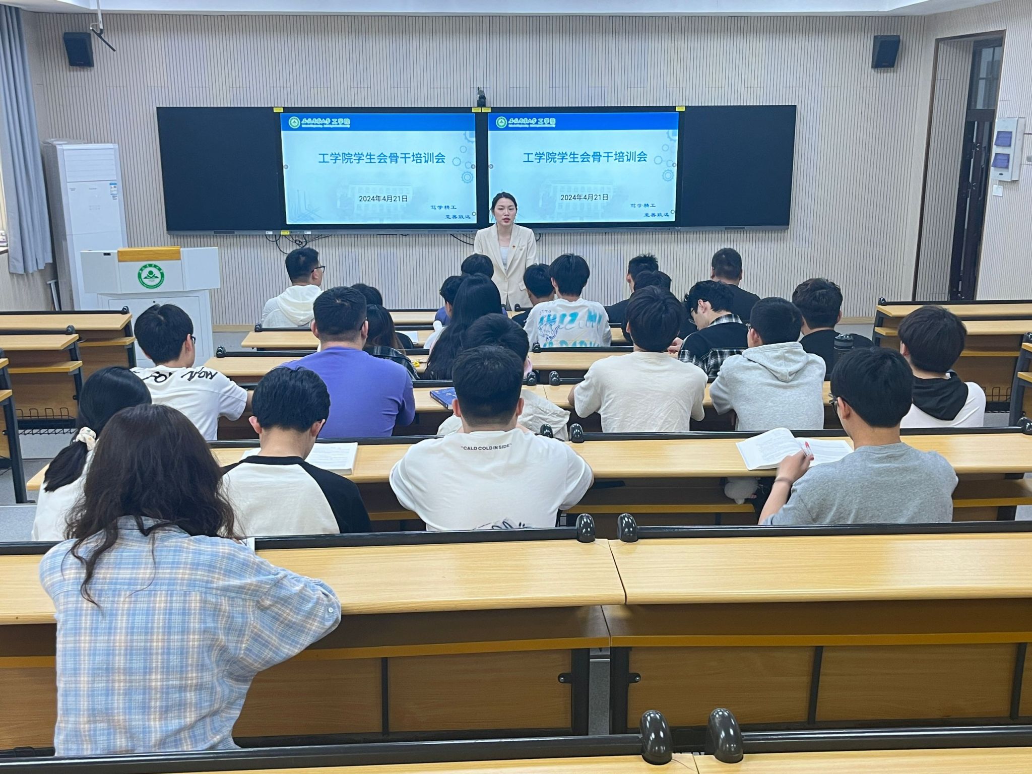 本网讯 4月22日中午,工学院春季学生会骨干培训会暨团委理论学习中心组会议在101会议室召开。学生会全体成员参会,会议由学院团委老师主持。