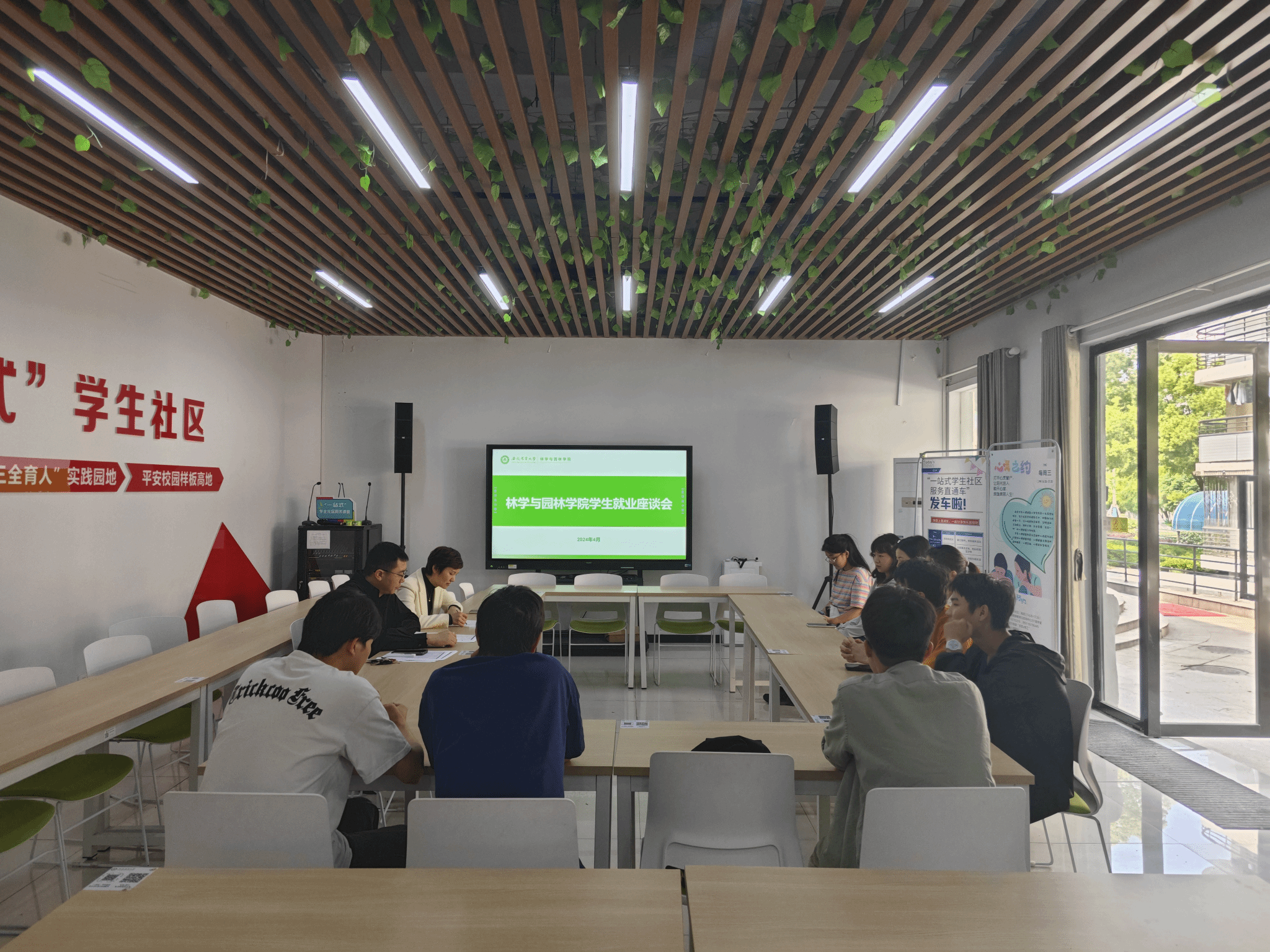 本网讯 4月23日上午,林学与园林学院在“一站式”学生社区开展学生就业帮扶座谈会,学院党委副书记夏利明、团委老师及学院毕业生代表参会。