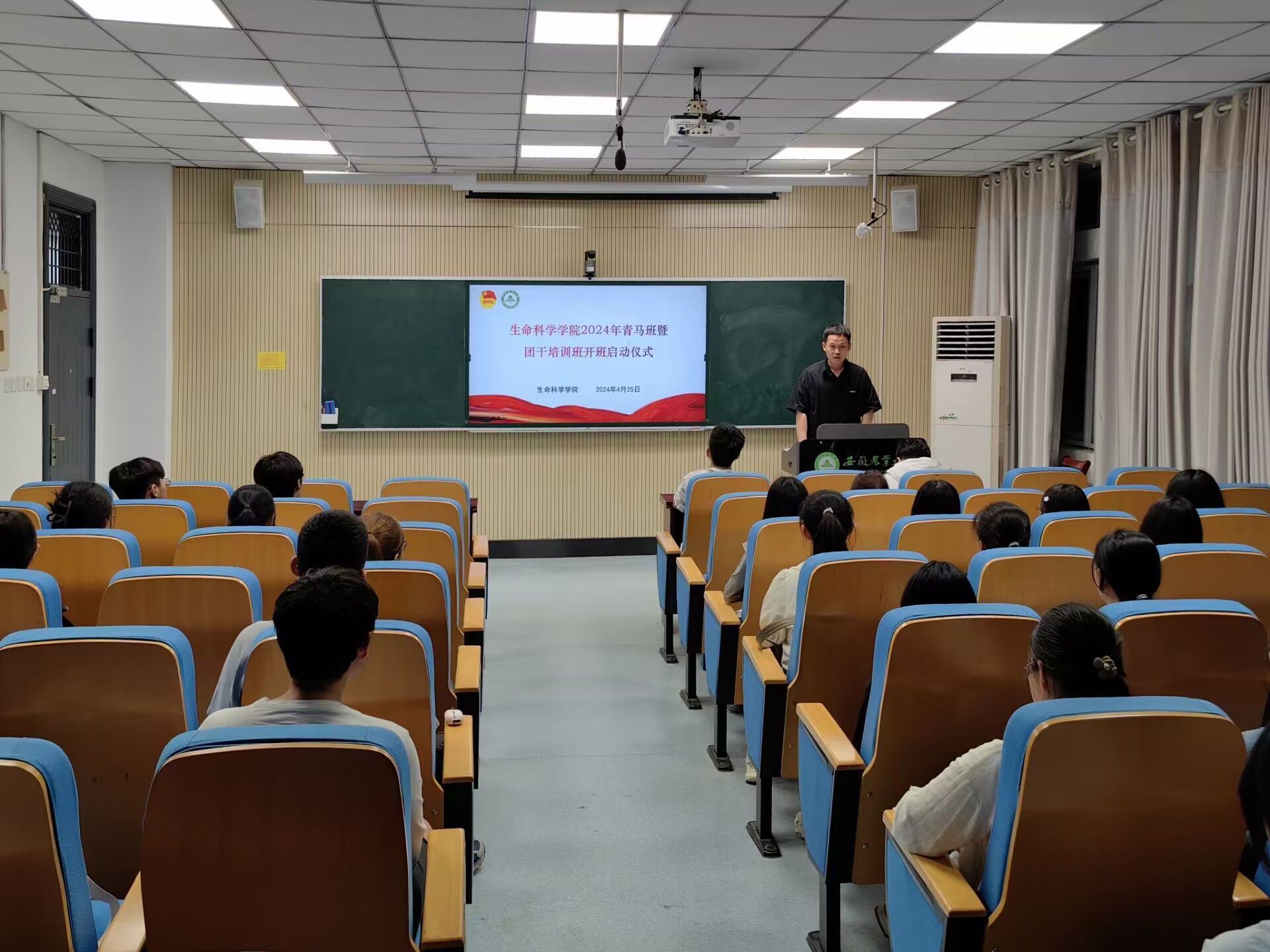 本网讯 为深入学习贯彻习近平新时代中国特色社会主义思想,切实发挥“青马工程”政治引领与人才培养功能,提升学生骨干综合素质和履职能力,4月25日晚,生命科学学院于十教216召开2024年“青马工程—菁穗领航计划”学习班暨团干培训班开班仪式。学院团委负责老师,青马班、团干培训班学员参加仪式。