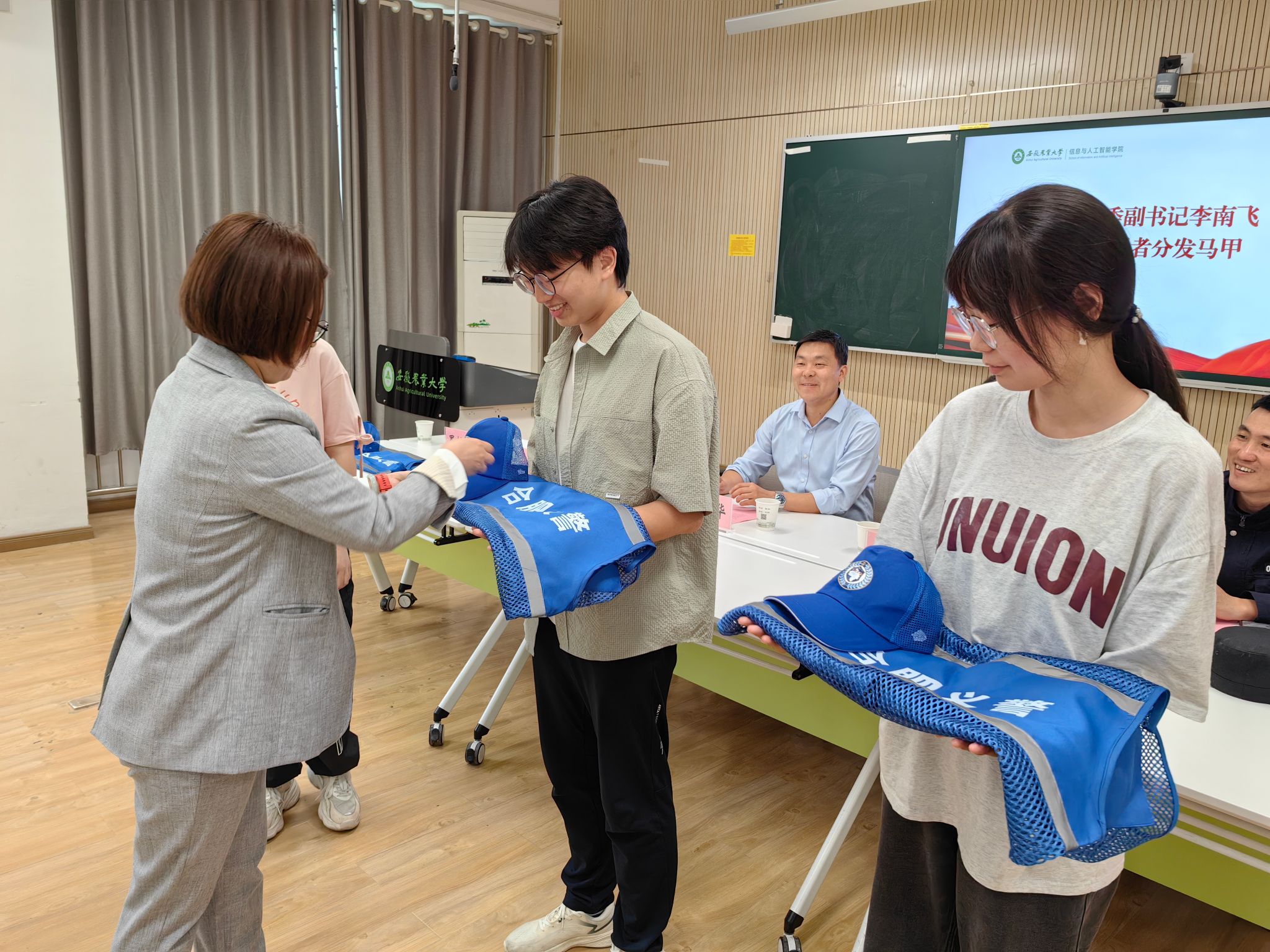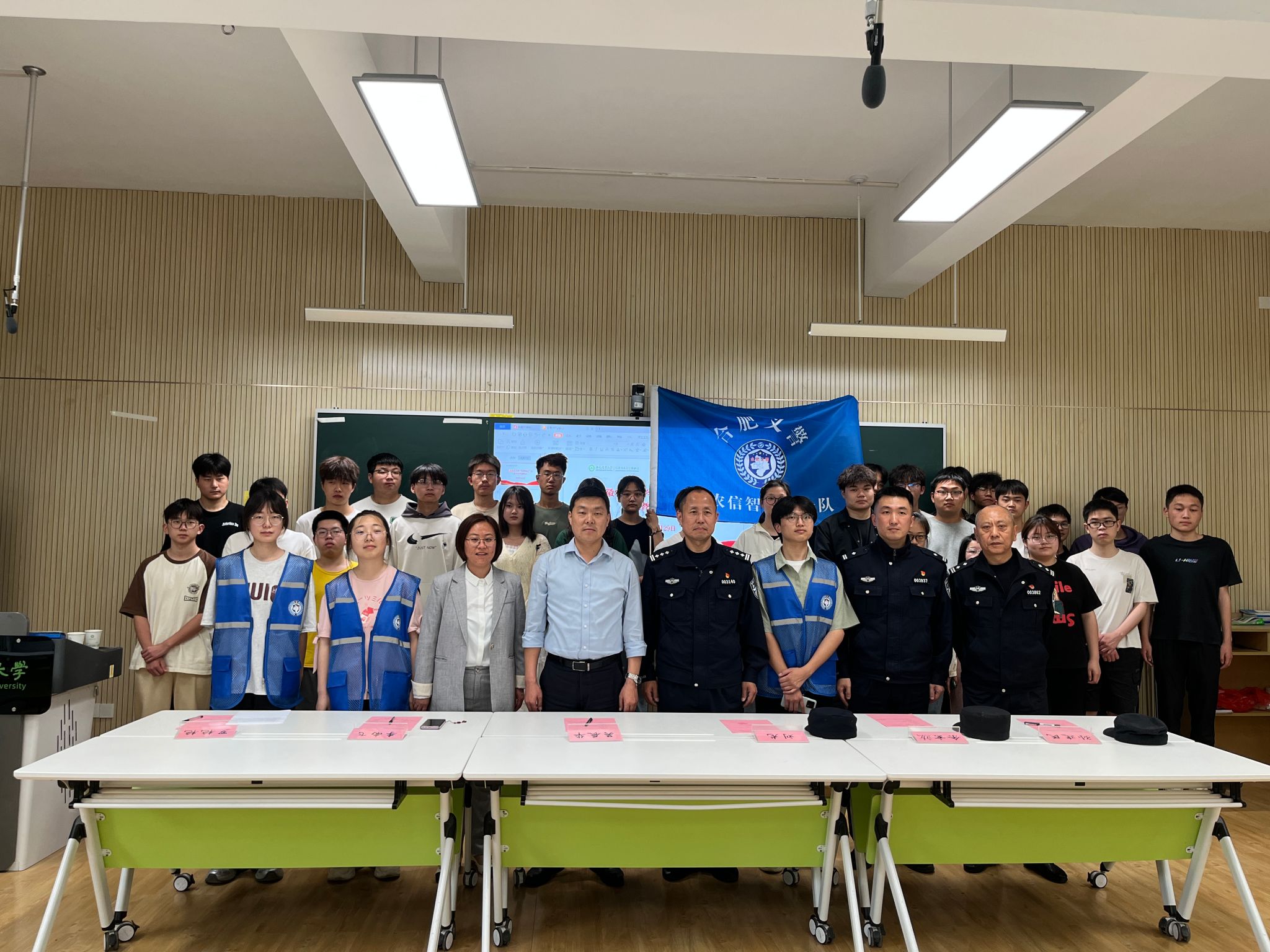 本网讯 4月29日下午,信息与人工智能学院在学院305教室举行安徽农业大学“信智义警”队成立暨授旗仪式。琥珀派出所所长刘龙、副所长余玄竑、社区民警孙建民、院党委书记吴辰华老师、院党委副书记李南飞老师参加会议。