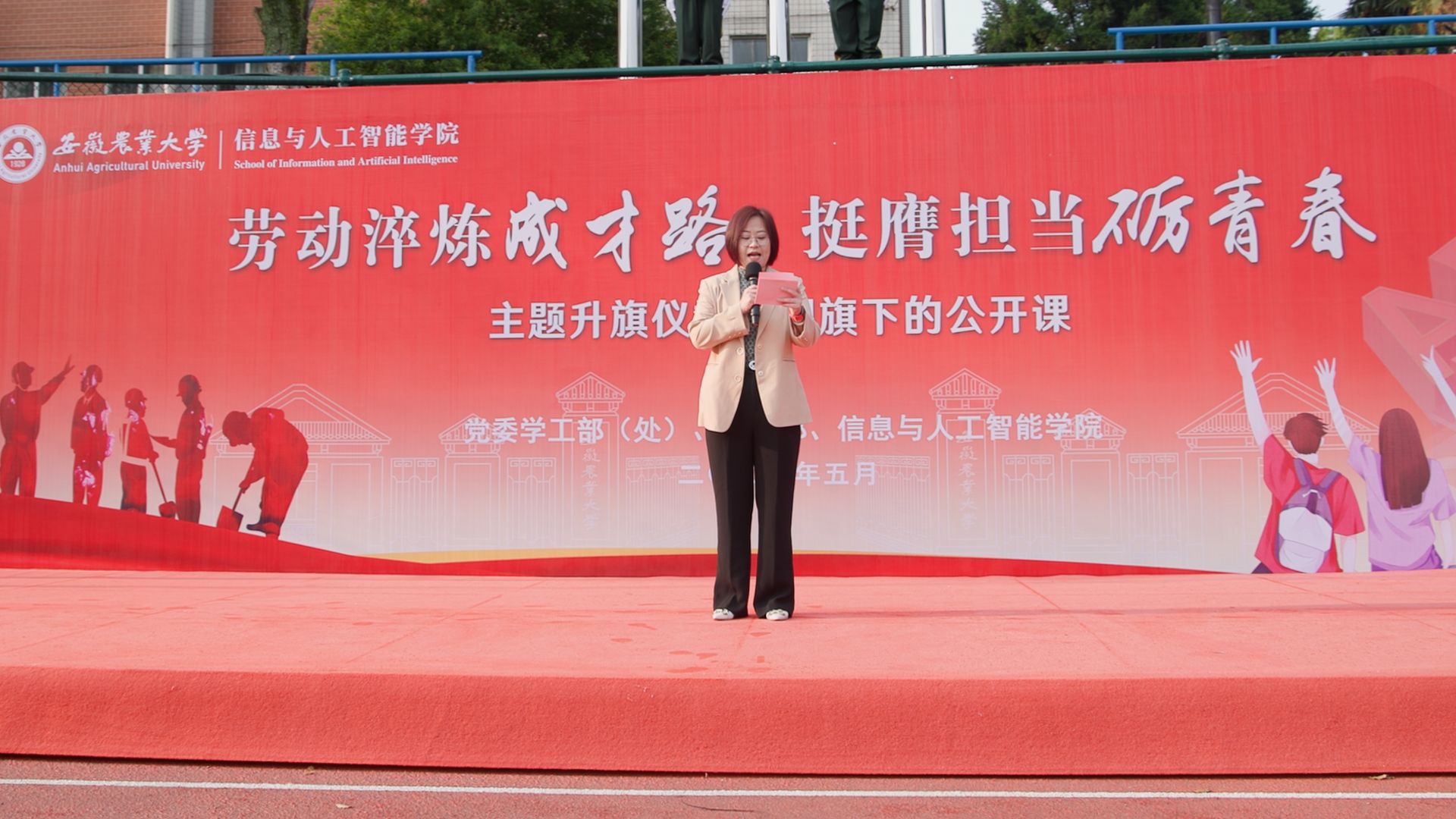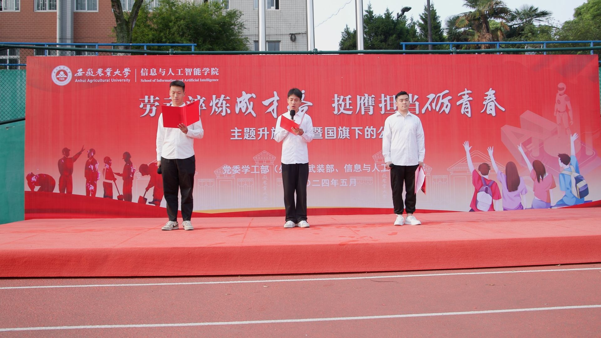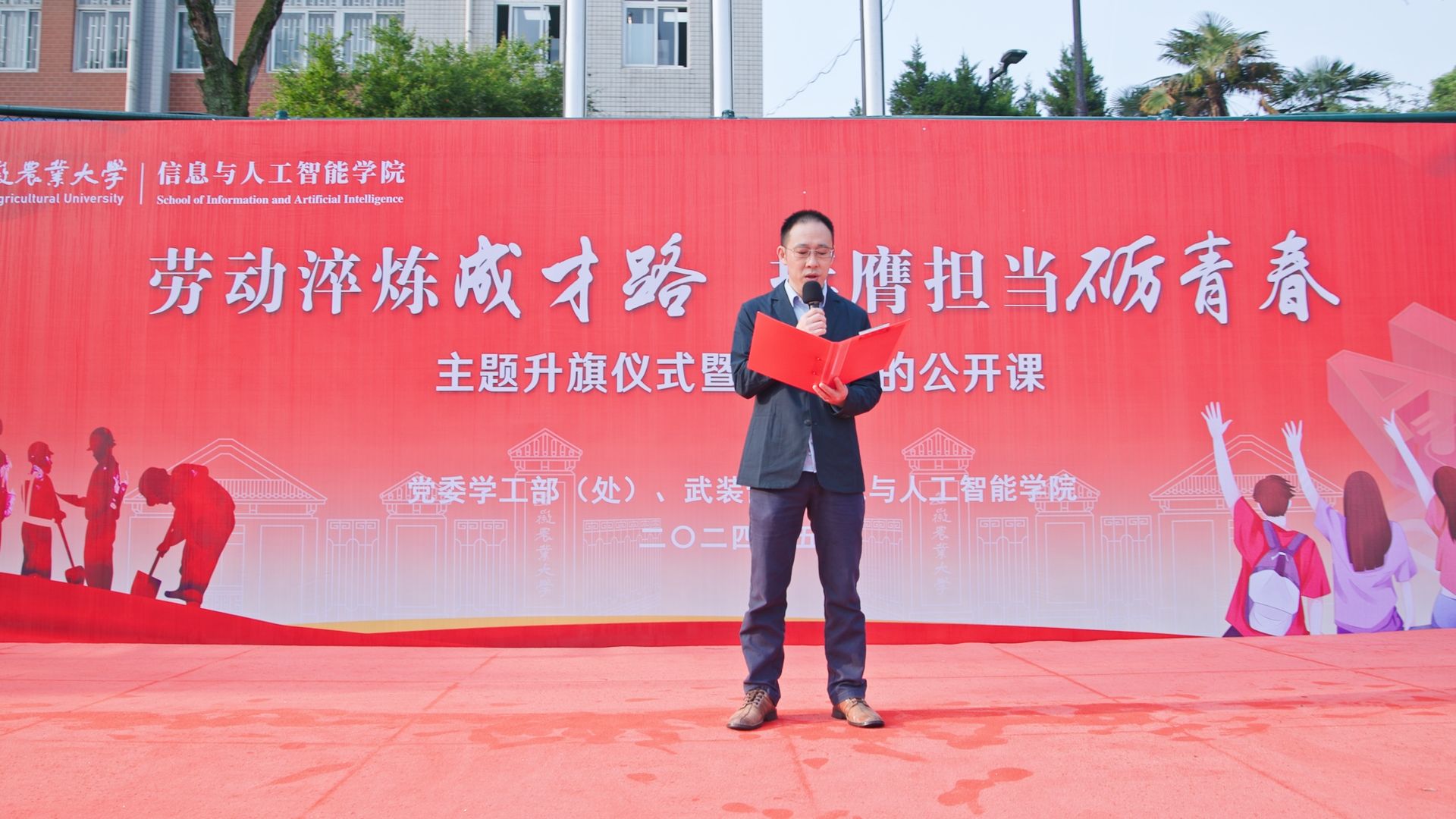 本网讯 为学习贯彻习近平总书记五四青年节对全国广大青年寄语精神,加强新时代大学生的劳动观,5月6日清晨,信息与人工智能学院在校第一运动场举行“劳动淬炼成才路 挺膺担当砺青春”主题升旗仪式暨国旗下的公开课。党委学生工作部、党委武装部、学生处(大学生就业指导中心)部长、处长、主任任琪老师,武装部副部长、学生处副处长卢伟老师,学院党政领导、全体专兼职辅导员、入团积极分子、党员发展对象、入党积极分子和2022级、2023级物流工程专业的全体同学参加了升旗仪式,升旗仪式由学院党委副书记、纪委书记李南飞主持。