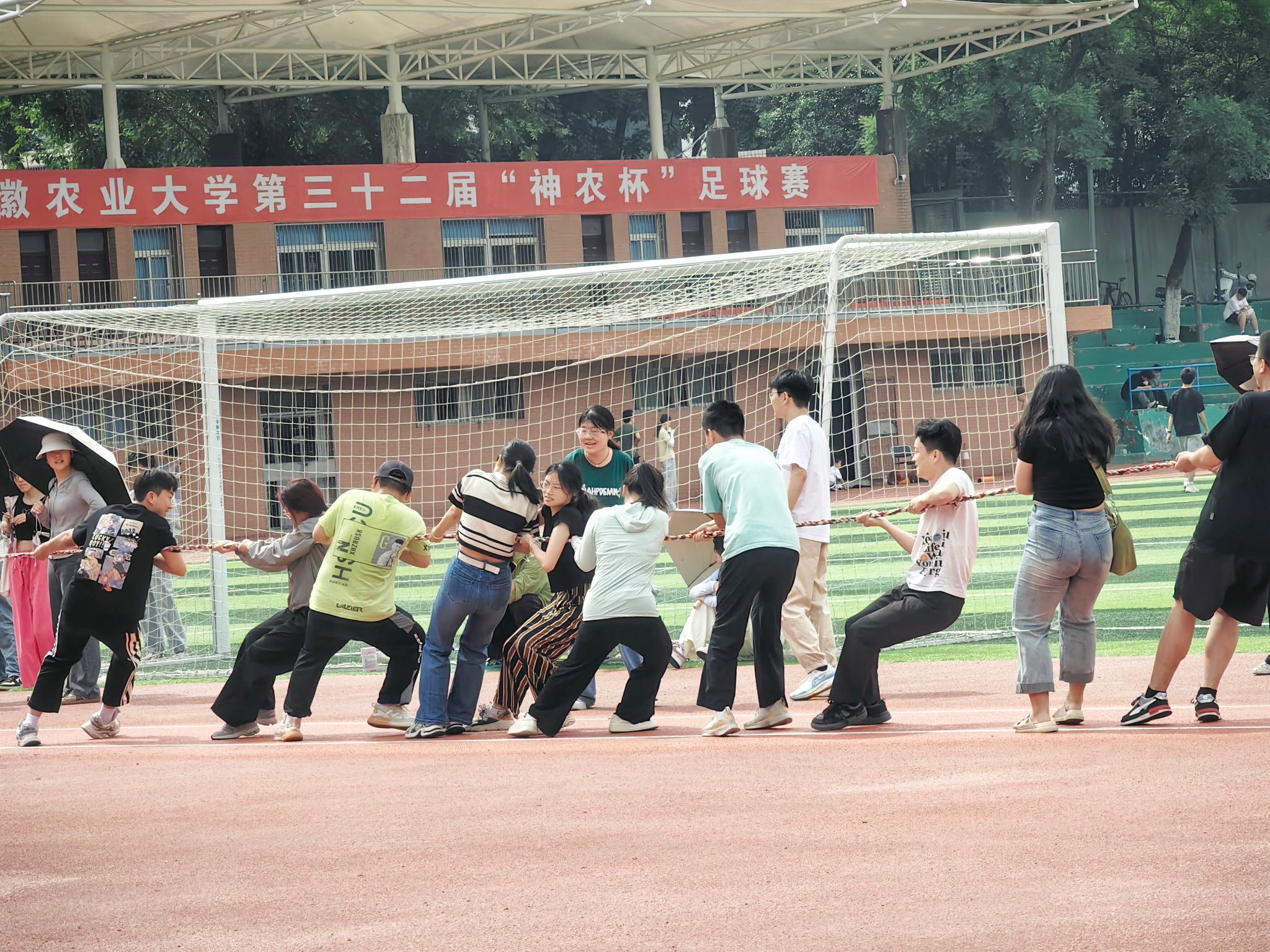 本届趣味运动会共设置包括“龙横四海”拔河比赛、“龙腾虎跃”跳绳比赛、“龙行龘龘”三人四足比赛等7个集体项目,每个项目按照名次计入团体总分,竞技性十足,趣味性更浓。同学们在场上你追我赶,奋勇争先。经过激烈的角逐,22生物制药1班获团体第一名,22生物技术3班获团体第二名,22生物技术1班获团体第三名。