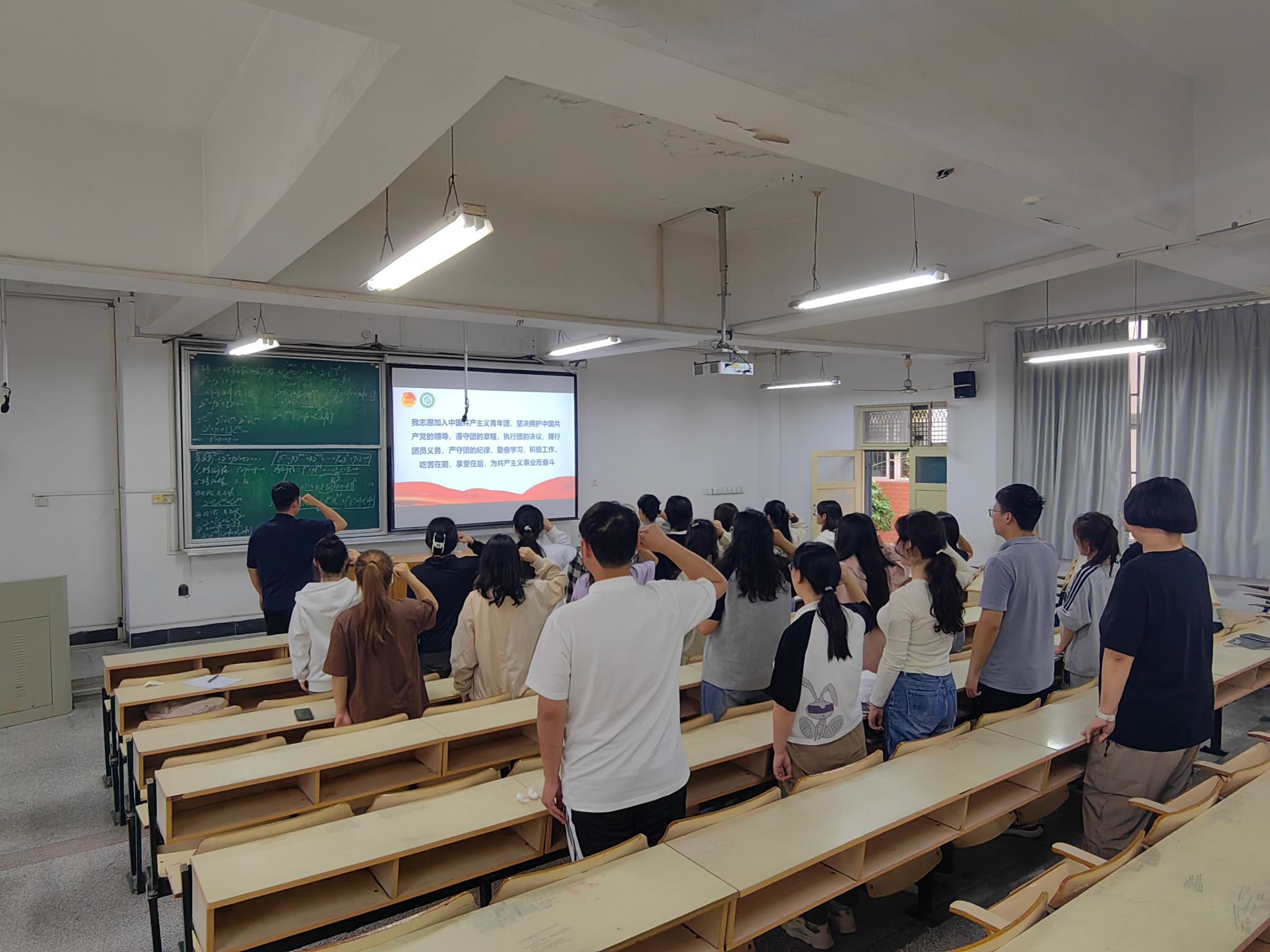 本网讯 为深入引导广大青年团员加强对团组织的认同感与归属感,生命科学学院于5月27日中午在勤学楼103举办2024年上半年新发展团员入团仪式。18名新发展团员与各班级团支书参加仪式,仪式由院团委负责老师主持。