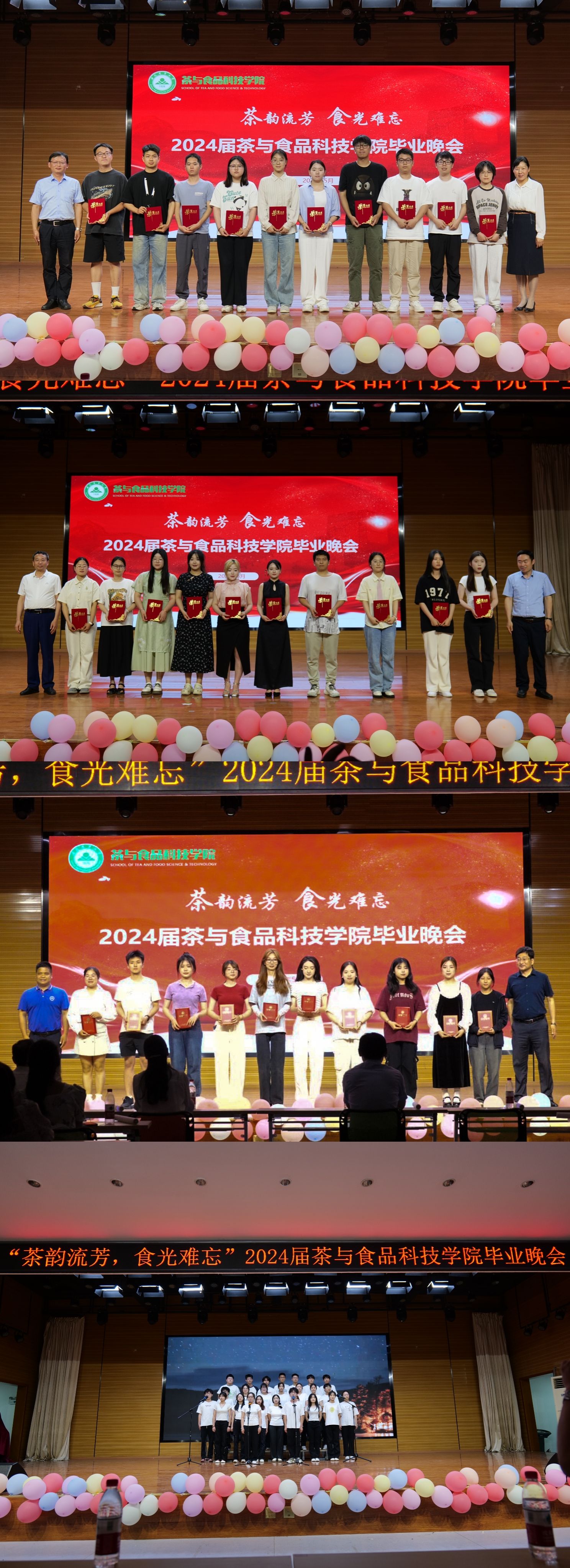 本网讯 仲夏鸣蝉,凤凰花开。又是一年毕业季,5月29日晚,茶韵流芳,“食”光难忘—茶与食品科技学院2024届毕业晚会在欣苑食堂四楼小礼堂圆满举行。学院党政领导、各系部负责人、教师代表以及辅导员应邀出席,与毕业生共赏晚会。
