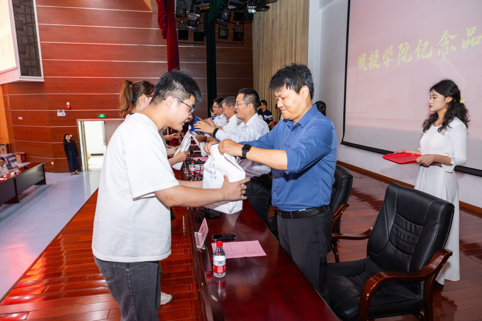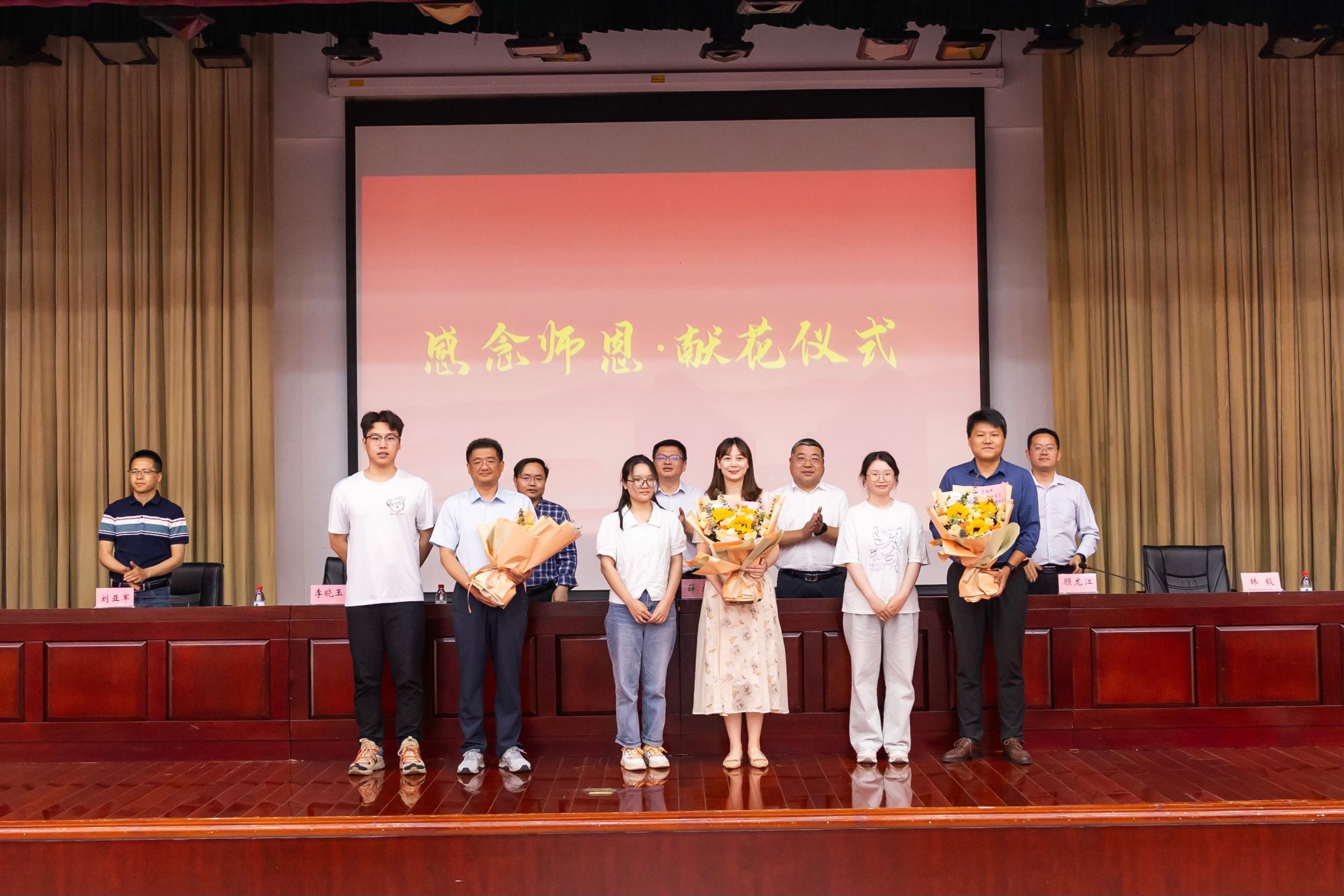 典礼上,副院长顾龙江宣读了学院受表彰的2024届省级、校级优秀毕业生名单。主席台领导老师为2024届毕业生颁发了学院精心定制的专属纪念品。典礼最后,毕业生代表向教师们赠送鲜花,表达心中的感激与不舍,感恩学院和老师的关怀与教诲。