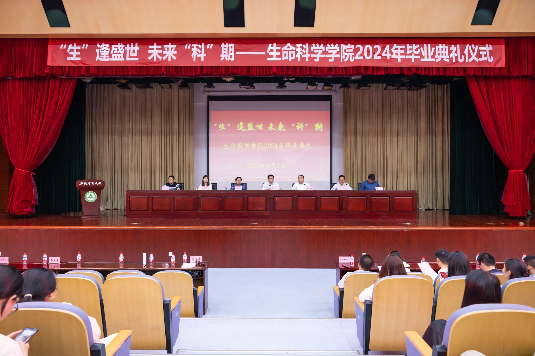 本网讯 6月7日上午,生命科学学院2024年毕业典礼仪式在图书馆第一报告厅举行。生命科学学院党政领导、系部主任、教师代表、毕业班辅导员代表以及2024届全体毕业生参加。典礼由学院党委副书记、纪委书记、副院长闫大玮主持。