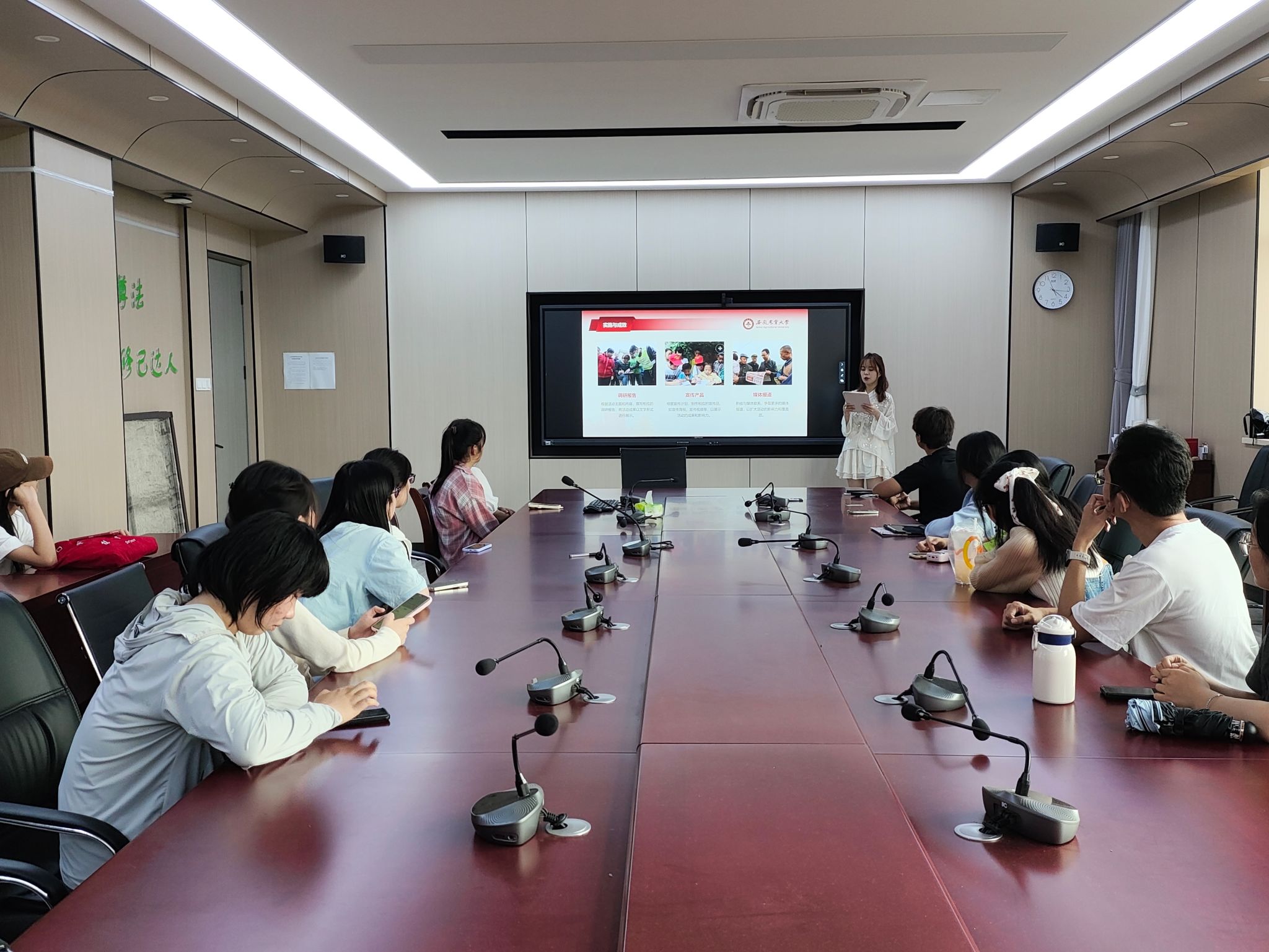 动员会后,学院邀请2023年校级重点团队负责人范诗语、彭冠仪同学对暑期“三下乡”活动进行了经验分享和现场交流。