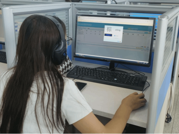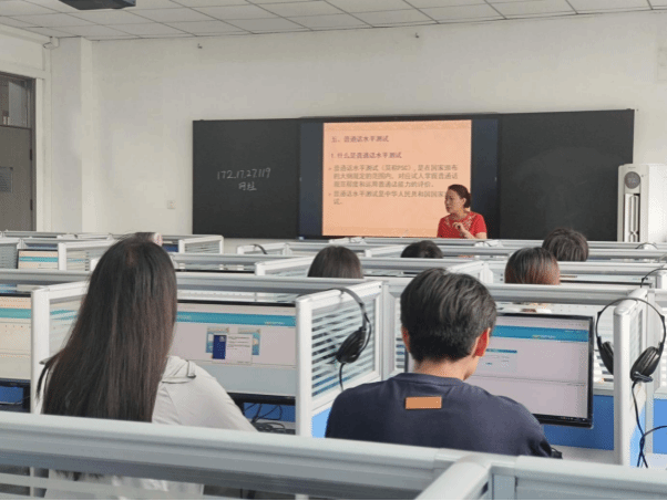 陈风华老师以推广国家通用语言文字的重要性切入,讲解了普通话测试中的注意事项、操作方法,并根据不同地区方言发音的差异,给予了针对性的建议和指导,教育引导学生在日常生活中规范使用国家通用语言文字,最后为同学们提供实验设备,模拟测试过程。