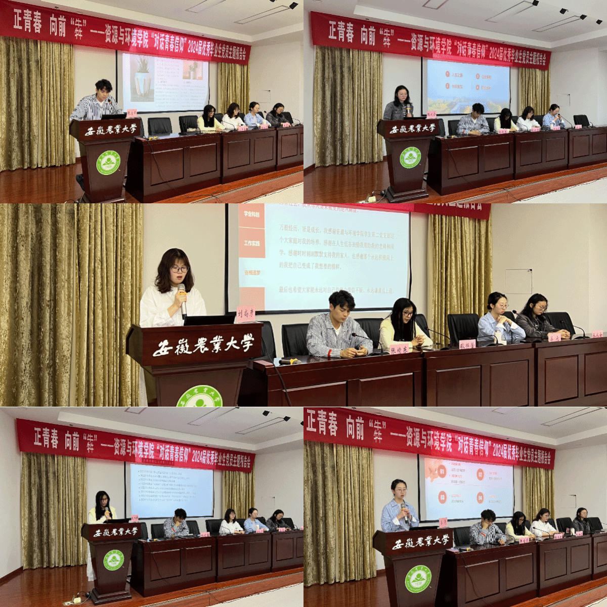 在毕业班学生党员离校前夕,学院举办“对话青春信仰”2024届优秀毕业生党员主题宣讲会,5位优秀毕业生党员代表张靖东、耿梓馨、刘尚彦、苏尧、张成会结合自己在大学期间的经历、经验和感悟分享他们的青春成长故事。作为大学生党员,他们以坚定的青春信仰和实际行动诠释了什么是党员先进性,通过报告交流,更进一步坚定了与会青年学子永远跟党走的青春信仰。每一次宣讲交流既是一堂平实、亲近的思想政治教育课,也是一次深刻的精神洗礼和党性教育,在低年级同学中产生了强烈反响和广泛好评。