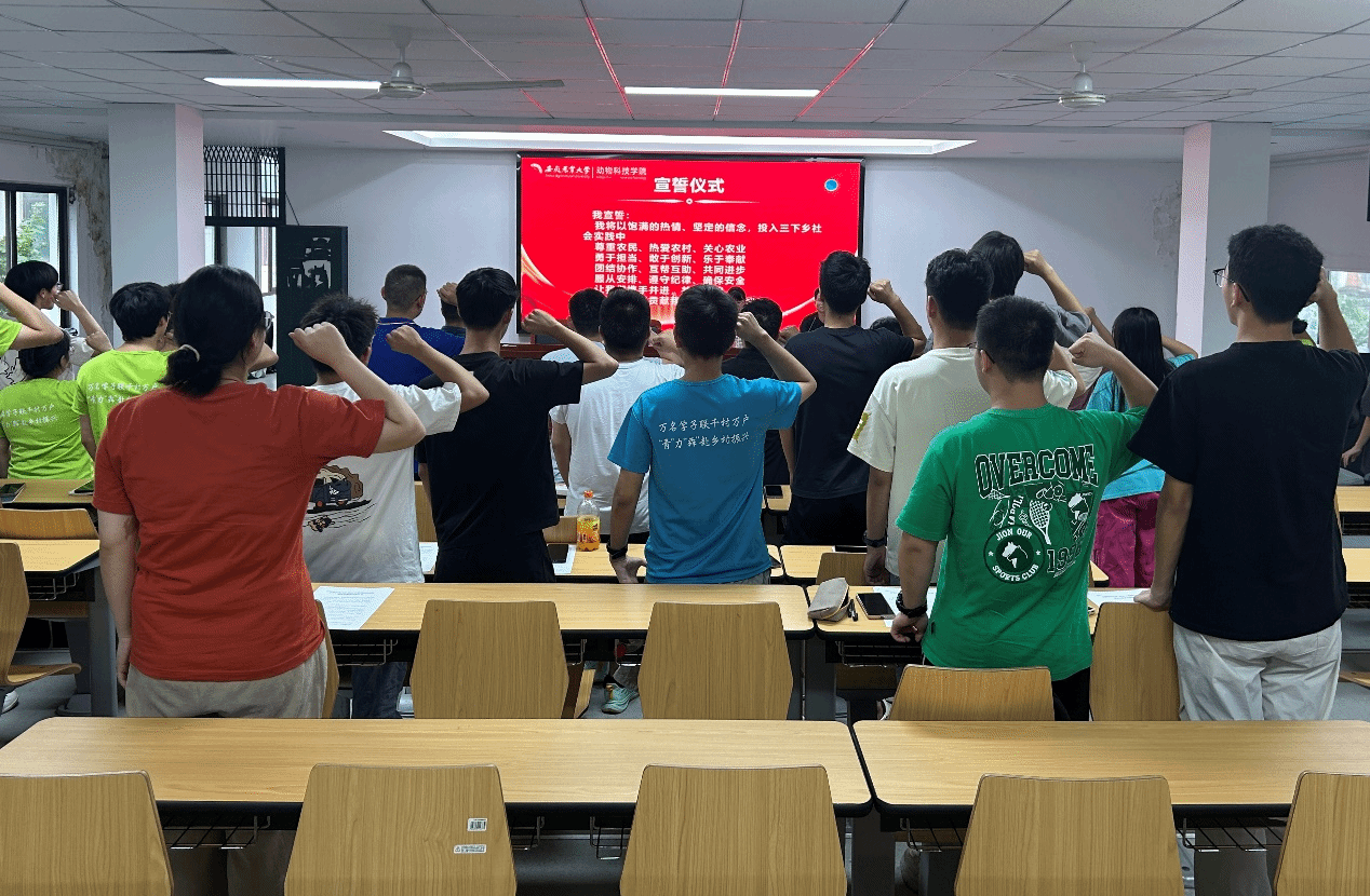 会上,沈兆梅阐明了“三下乡”活动的意义。自“三下乡”活动开展以来,它已成为高校服务社会、锻炼学生、传播知识的重要途径。对于动物科技学院的学子而言,更是一次将理论知识转化为实际应用,促进农业现代化,助力乡村振兴的宝贵机会。她鼓励同学们牢记习近平总书记的嘱托,全身心投入到“三下乡”社会实践中去,积极在服务乡村振兴中解民生、治学问,努力将自己发展成为有理想、敢担当、能吃苦、肯奋斗的新时代好青年。她强调,乡村振兴和农业强国建设需要青年一代的参与和贡献,希望同学们能够珍惜这次机会,为乡村的繁荣和发展贡献自己的青春力量。