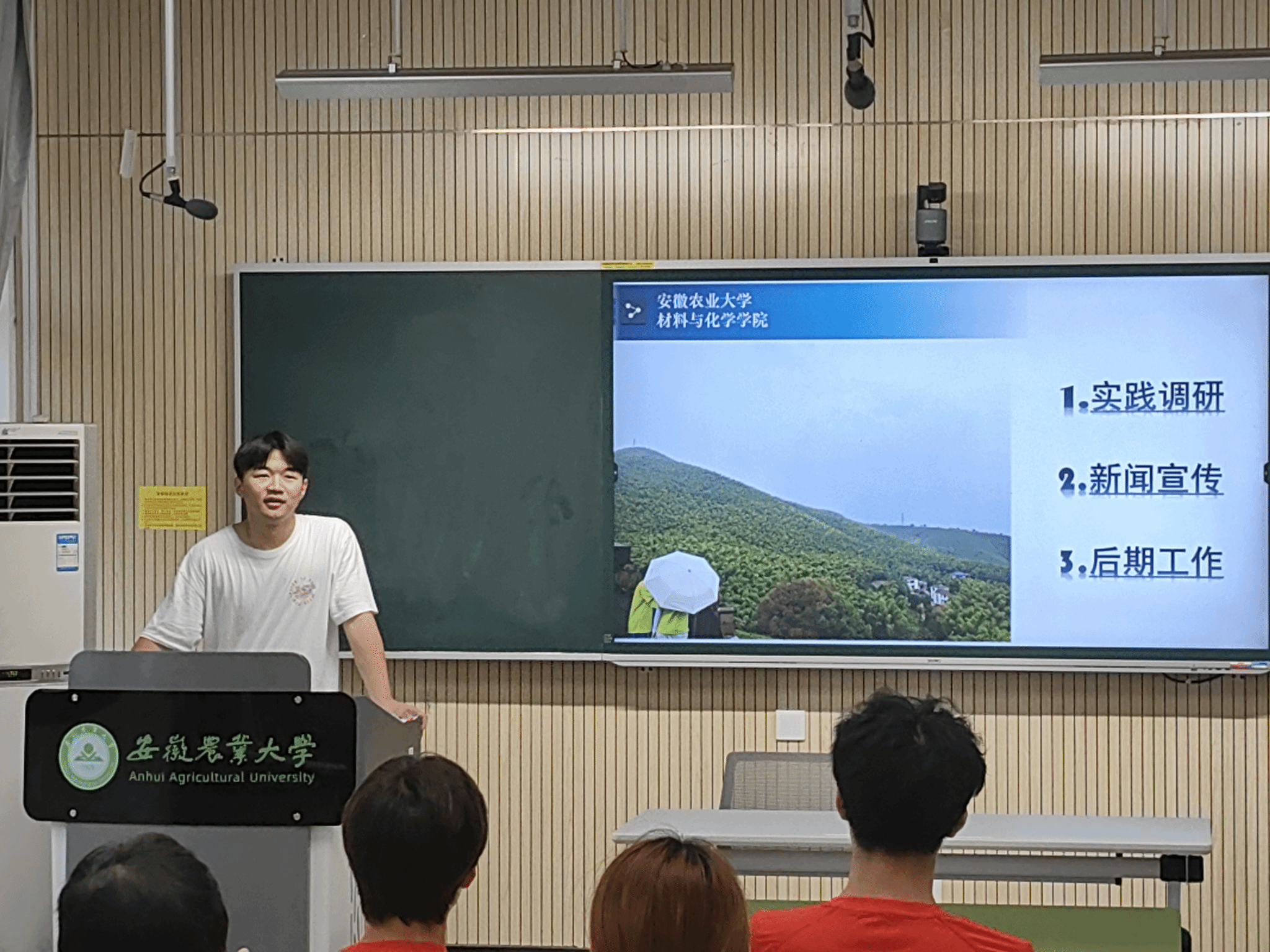 学生代表黄从涛分享其2022年度、2023年度参加“三下乡”活动的经历,从团队管理、实践调研、新闻撰写与投稿等方面分享经验心得,强化了同学们成果转化意识。