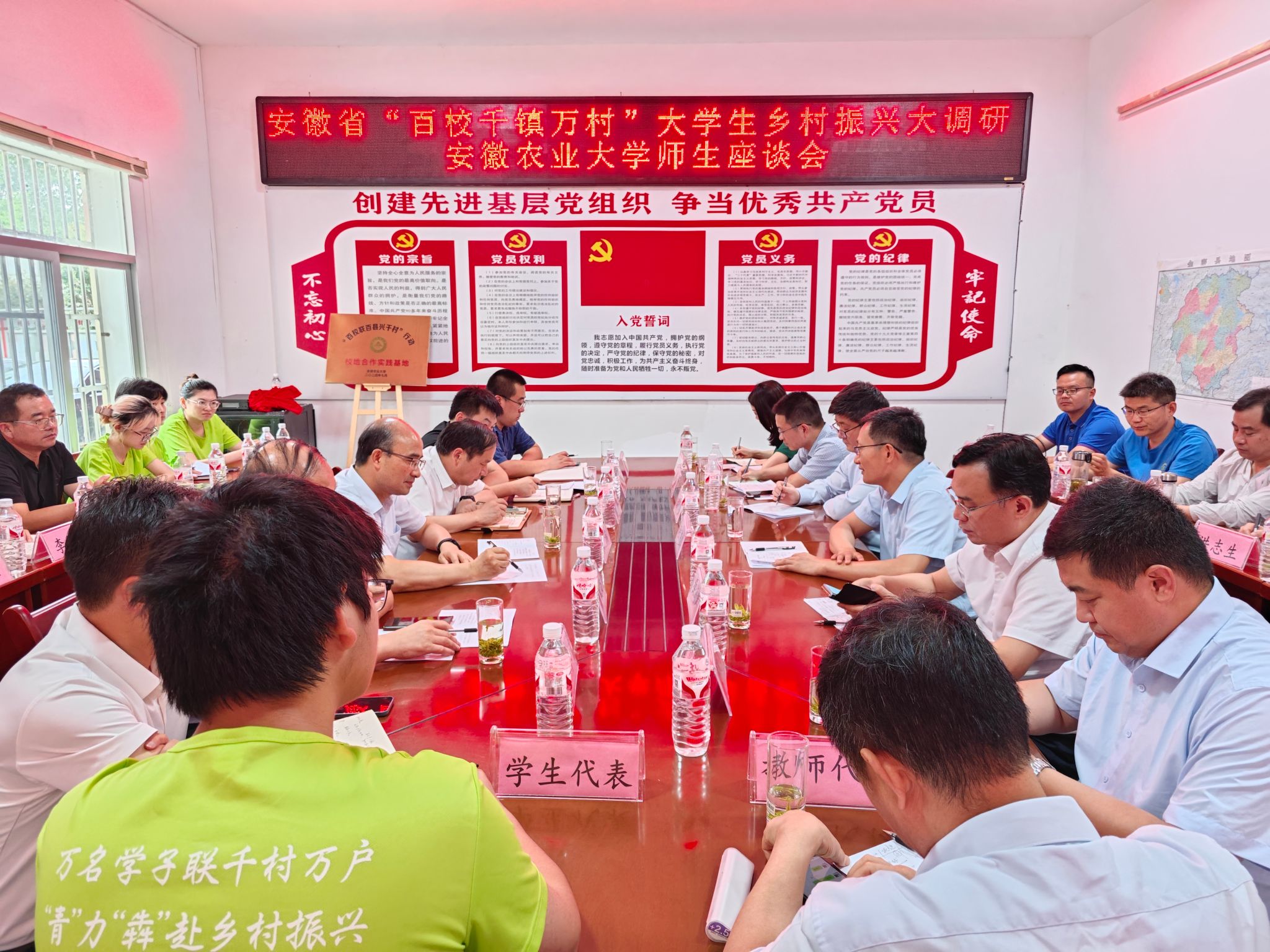 校领导还观看了学生直播助农现场,参加“百校联百县兴千村”行动校地合作基地揭牌仪式。校领导的慰问,使团队师生深受鼓舞,表示要更加珍惜社会实践机会,不断增强服务乡村振兴的本领,践行农学人的担当作为。据悉,农学院已有15支队伍奔赴安庆、淮北、六安、阜阳等地,开展调研、帮扶等暑期社会实践活动。(图/文/编辑/范宇 初审/冯峰 审核/魏安康)