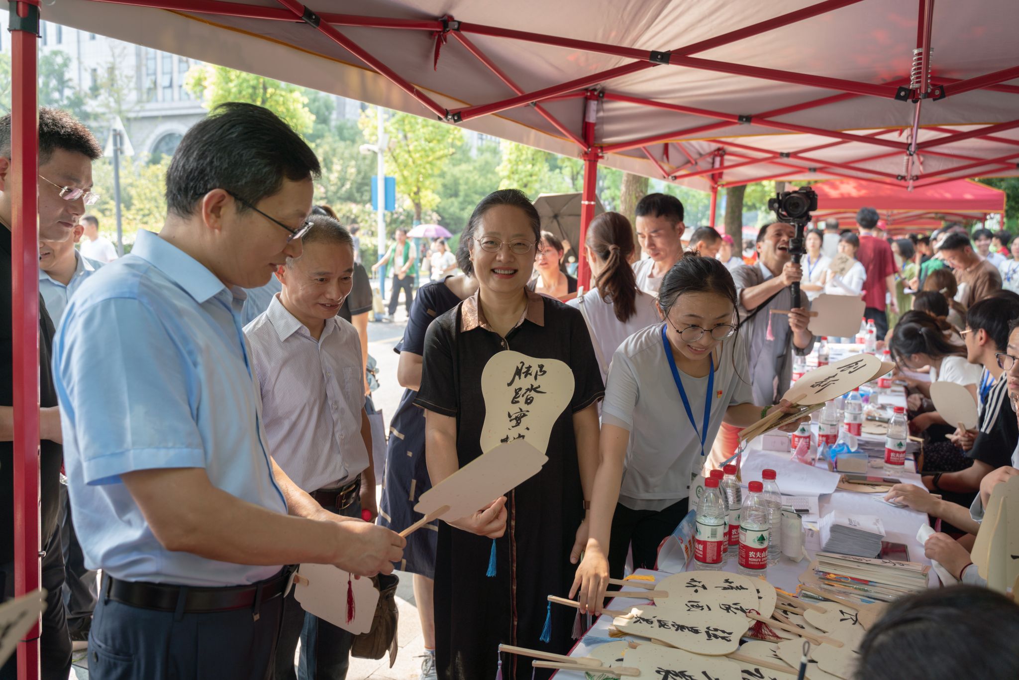 文化为媒,传承信仰,迎新遇见“书法秀”。以中华优秀传统文化为载体,学院为每位新生准备了宣纸、团扇、书签,志愿者们用毛笔在宣纸、团扇、书签上书写美好祝福,传播安农文化。“奉献 创新 奋斗”“脚踏实地”“敬敷 勤勉 弘道”“博学 敏行 善言”“强农先锋 社会英才”习近平总书记青年寄语手卡备受欢迎,新生纷纷拍照留念。