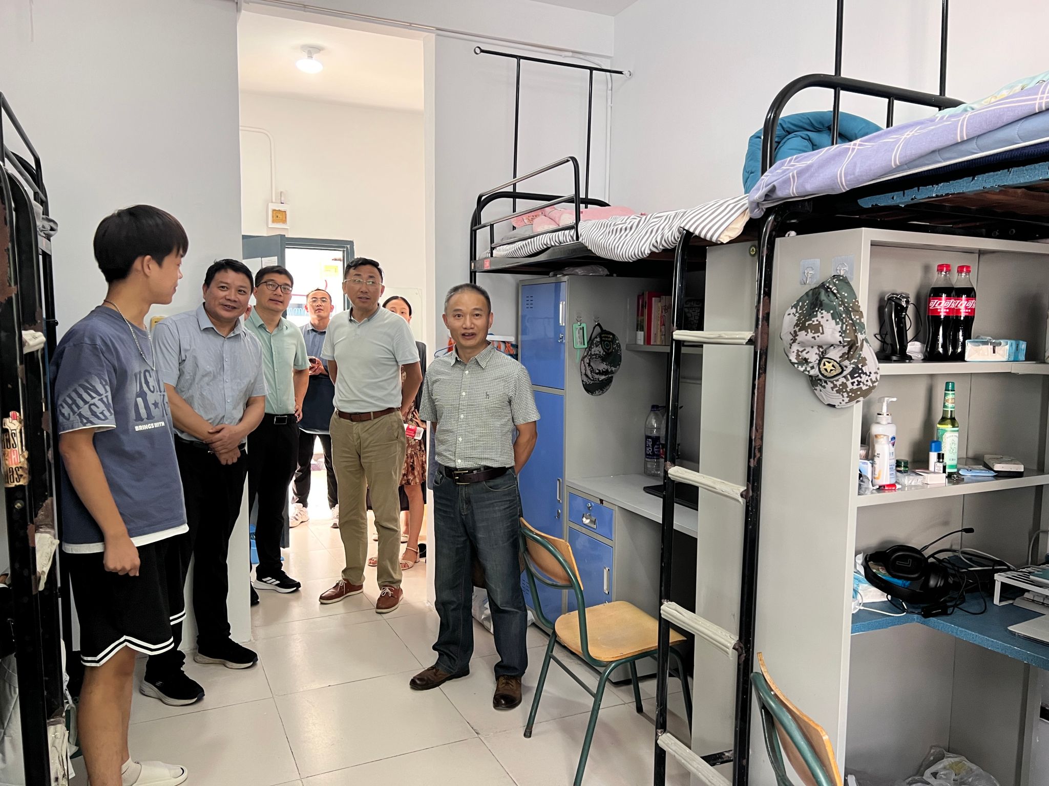 心系学子,温馨关怀,春风化雨“润心田”。 学院领导到迎新现场,看望报到新生与亲友,并与辅导员老师、志愿者、新生家长交流。9月1日下午,学院领导和新生辅导员走进新生宿舍,与新生亲切交谈。“欢迎来到安徽农业大学!”“入学报到还顺利吗?”“饭菜吃不吃得惯?”“集体宿舍休息可还习惯?”领导们详细了解了新生的报道情况和入学感受,叮嘱大家尽快适应大学环境,树立人生新阶段的奋斗目标,秉持“博文尊法,修己达人”的院训精神奋进新征程。