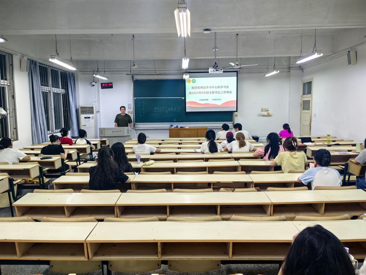 本网讯 9月9日晚上,生命科学学院在勤学楼102教室召开院团委理论学习中心组学习会暨9月团支部书记工作例会,学院团委理论学习中心组全体成员、本硕各班级团支部书记、学生会团工部全体同学参加会议,会议由院团学负责老师主持。