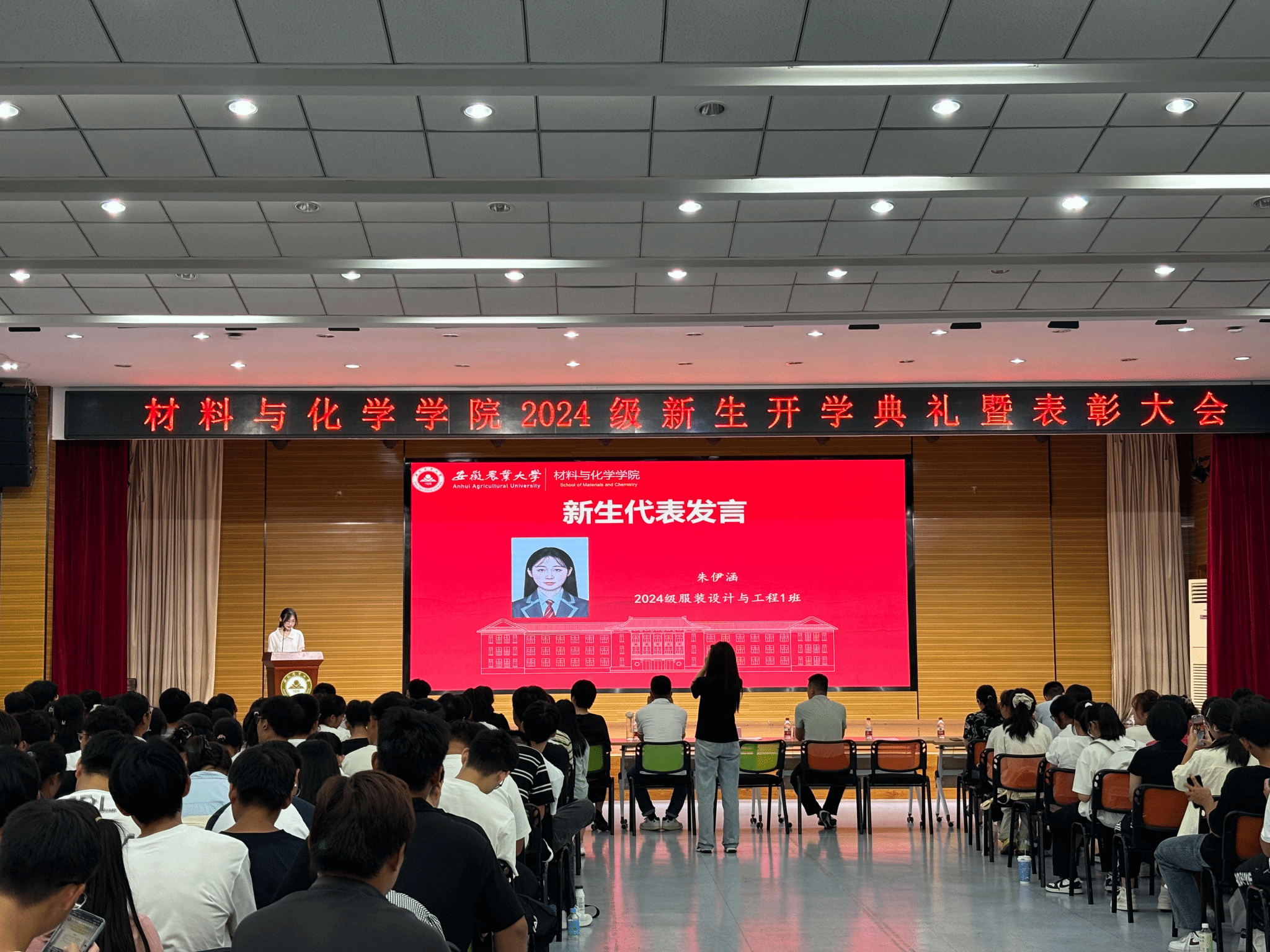 新生代表2024级服装设计与工程专业朱伊涵发言表示,站在人生的崭新起点,成为“新材化人”,将脚踏实地,勤勉自强,做坚守奋斗的合格农大人,用心动脑,求实探索,做求知勉行的优秀农大人。