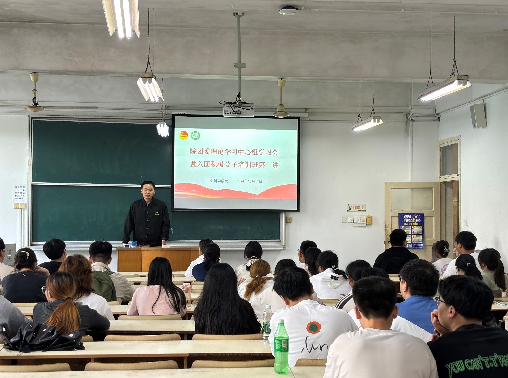 本网讯 10月11日中午,生命科学学院在勤学楼106教室召开院团委理论学习中心组学习会暨入团积极分子培训班第一讲,学院团委理论学习中心组全体成员,本硕各班级团支部书记,学生会团工部全体成员及各团支部入团积极分子参加会议,会议由院团学负责老师姚剑波主持。