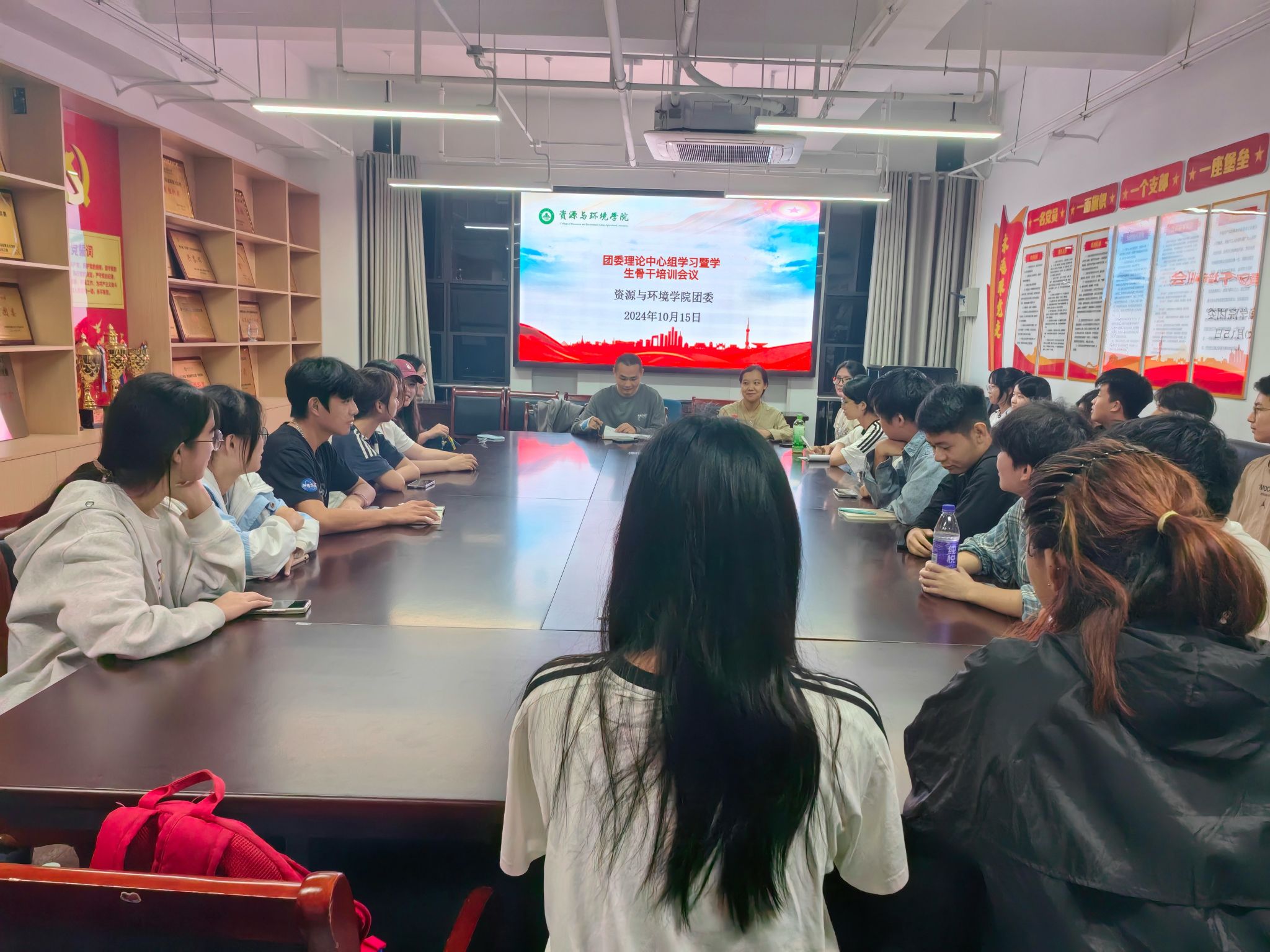本网讯 10月15日晚,资源与环境学院在勤业楼2010举行团委理论学习中心组学习暨学生骨干培训会议。会议由学院团学工作负责人主持,各专业团支书和学生会各部门主要成员参加了会议。