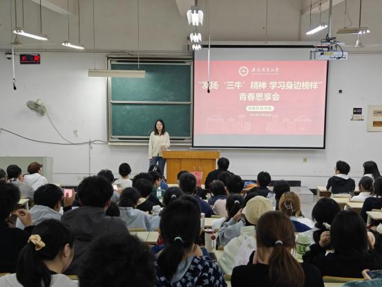 本网讯 10月28日,2024级动物科学专业1-6班在博学楼124教室开展“发扬‘三牛’精神,学习身边榜样”青春思享会。各班级班主任老师、专职辅导员老师、高年级优秀学生骨干以及全体学生参加活动。