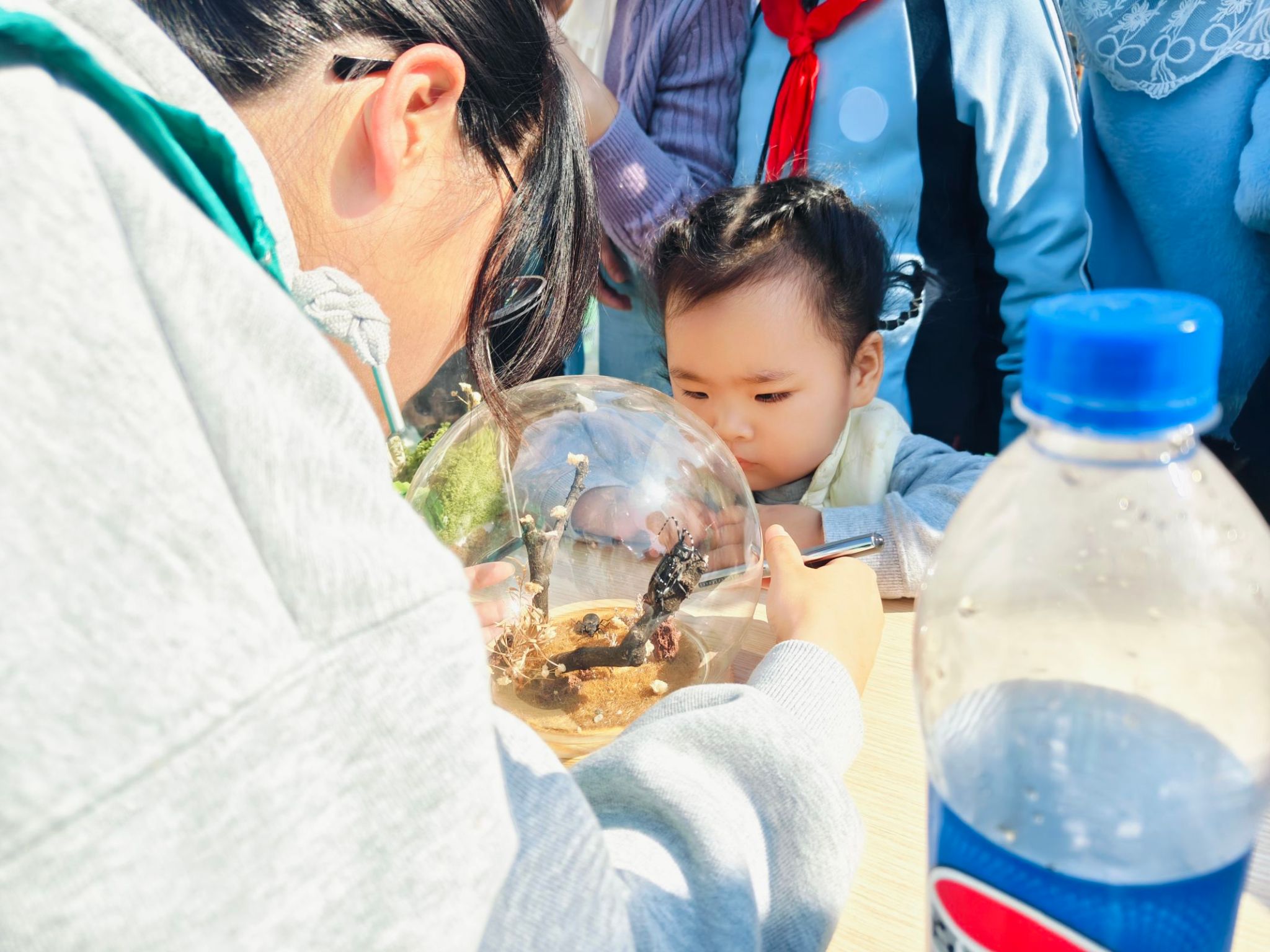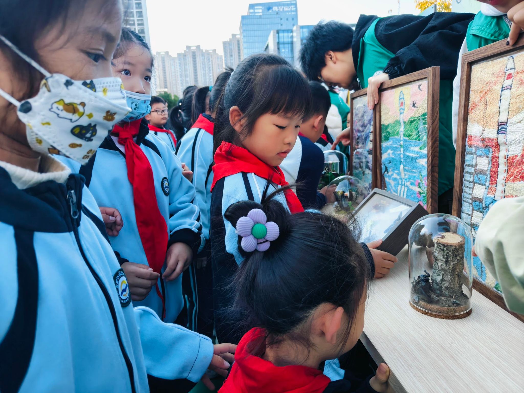 此外,团队还特别展示了制作精良的昆虫标本、构思巧妙的昆虫微景观,以及富有教育意义的“五谷画”等科普作品,以其独特的艺术魅力与科学价值吸引了众多小学生的目光,他们或驻足细赏,或低头沉思,或主动与志愿者进行交流探讨,充分展现了科普活动对于激发小学生科学兴趣与探索欲望的重要作用。
