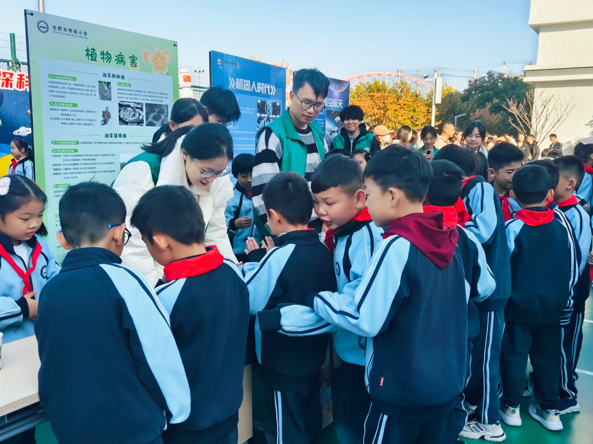 本网讯 11月7日早上,植物保护学院志愿者团队赴合肥市明珠小学开展“绿动未来,守护植趣——植物保护科普行”主题活动,共计20余位本科生和研究生参加。