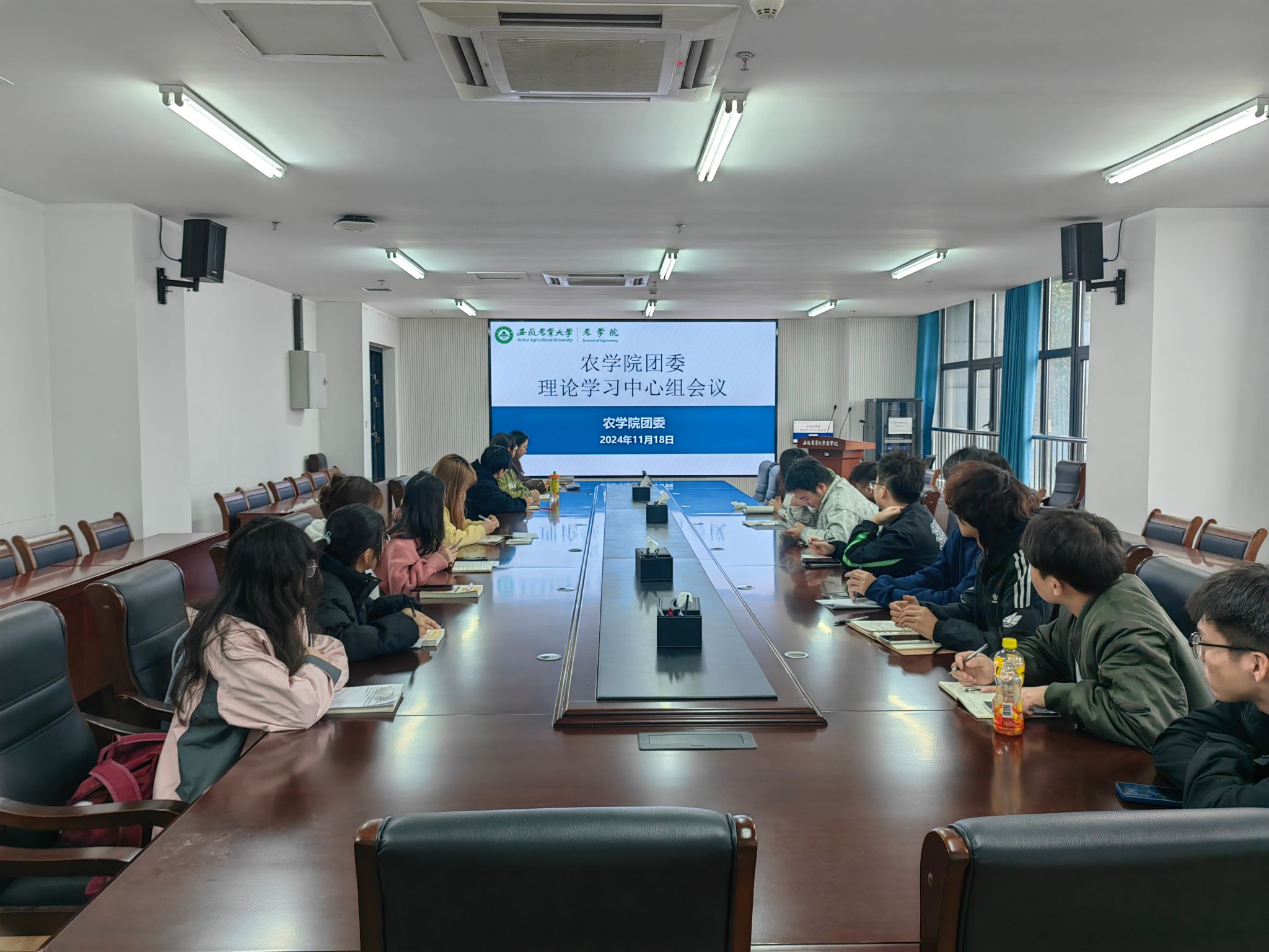 本网讯 11月18日中午,农学院在朝阳楼208会议室召开团委理论学习中心组学习会,会议由农学院团学工作负责人范宇主持,学生分会主席团及各部门部长参加本次会议。