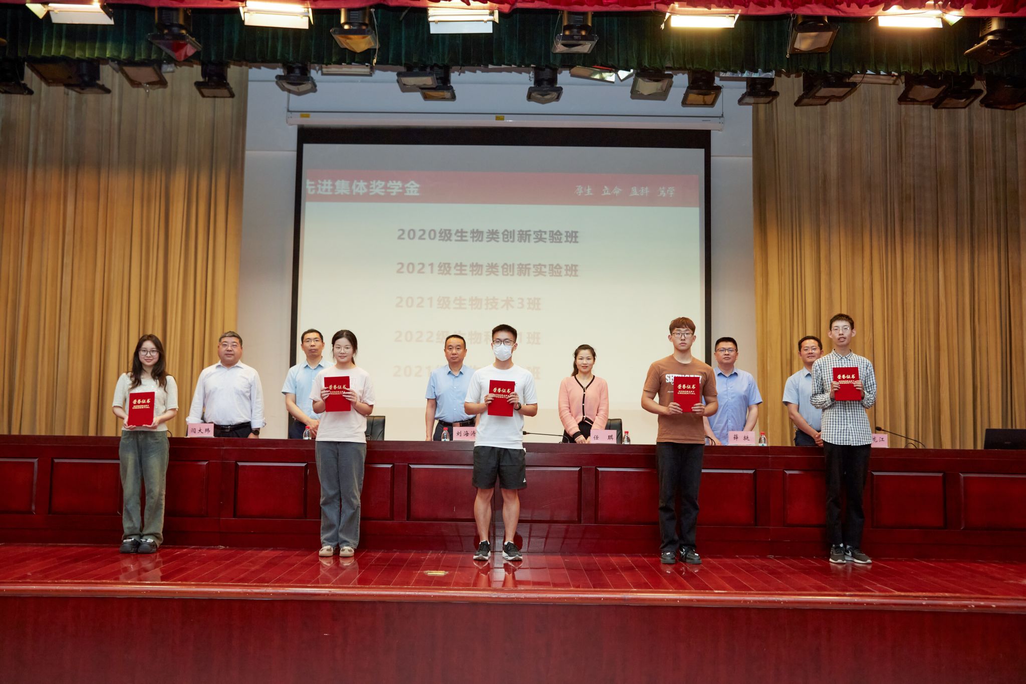 传承助学,生生不息。5月17日下午,学院举办了“一站式”学生社区“学生服务直通车”系列活动—“生命之光·纳昂达”奖学金颁奖典礼。学校校友会办公室主任刘海涛、校学工部部长任琪,生命科学学院党政领导出席典礼并为获奖学生颁奖。本次“生命之光·纳昂达”创先优奖学金共表彰学术创新类25人、文化与体育类20人、社会服务与实践类20人以及先进集体奖5个。在颁奖仪式结束后,三位获奖学生代表根据自身经历,分享了自己在安农的成长故事。