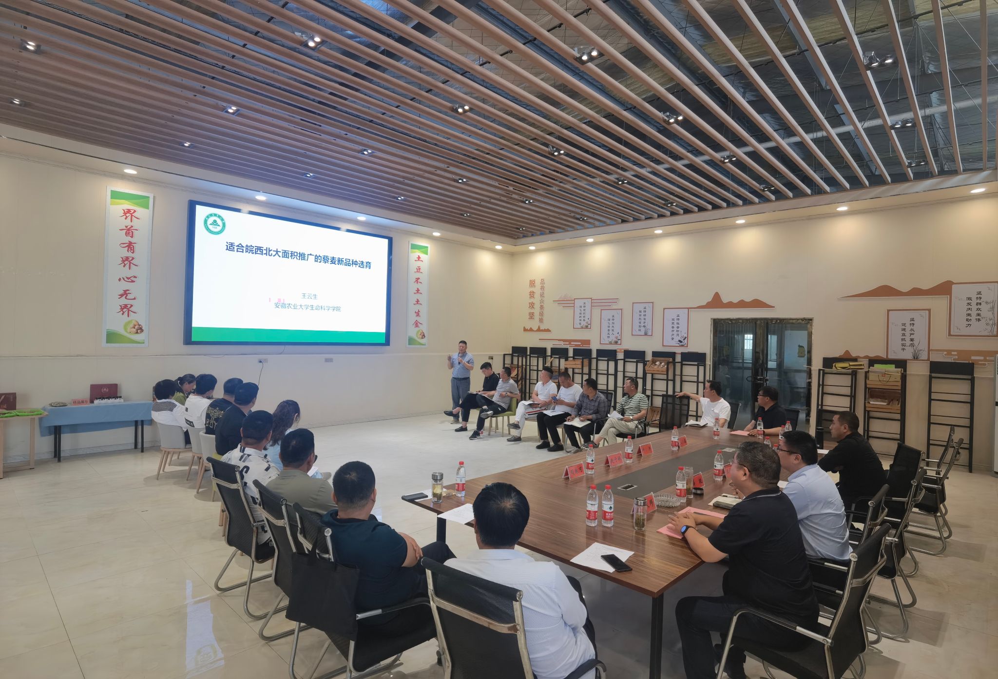 座谈会上,牛涛代表界首市陶庙镇人民政府对安徽农业大学一行的到来表示热烈欢迎,并详细介绍了陶庙镇的现代农业产业发展近况。赵子银介绍了赵庄村集体经济发展概况。院领导薛挺向地方政府、企业负责人介绍了学院在办学理念、学科建设、人才培养、服务三农等方面取得的成效和下一步努力方向,并就进一步加深校地、校企合作进行了阐述,教师代表王云生分别在赵庄村和安徽丰絮农业科技股份有限公司作了科技服务乡村振兴项目介绍。