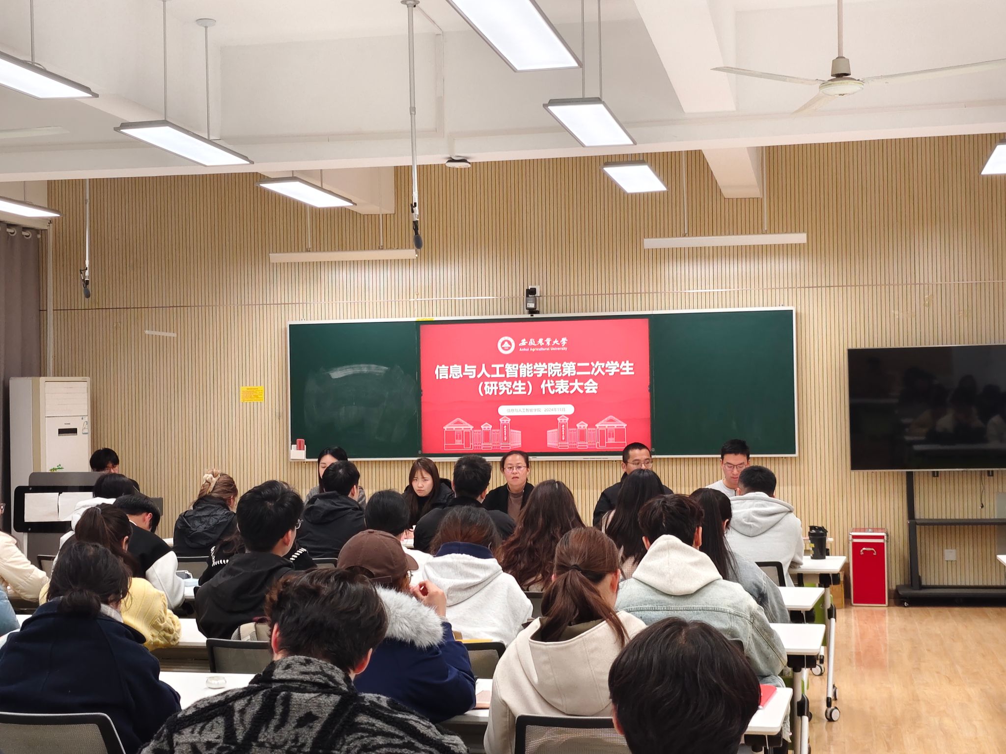 本网讯 坚定不移跟党走,红色沃土砺青春。11月26日晚,信息与人工智能学院第二次学生代表大会和研究生代表大会于信智楼305举行。学院党委副书记、纪委书记李南飞老师到场祝贺并致辞。学院团学负责人范雅辰老师、学院挂职团委副书记胡增增老师、学院兼职团委副书记张静出席代表大会,学院56名学生代表和16名研究生代表参加会议。