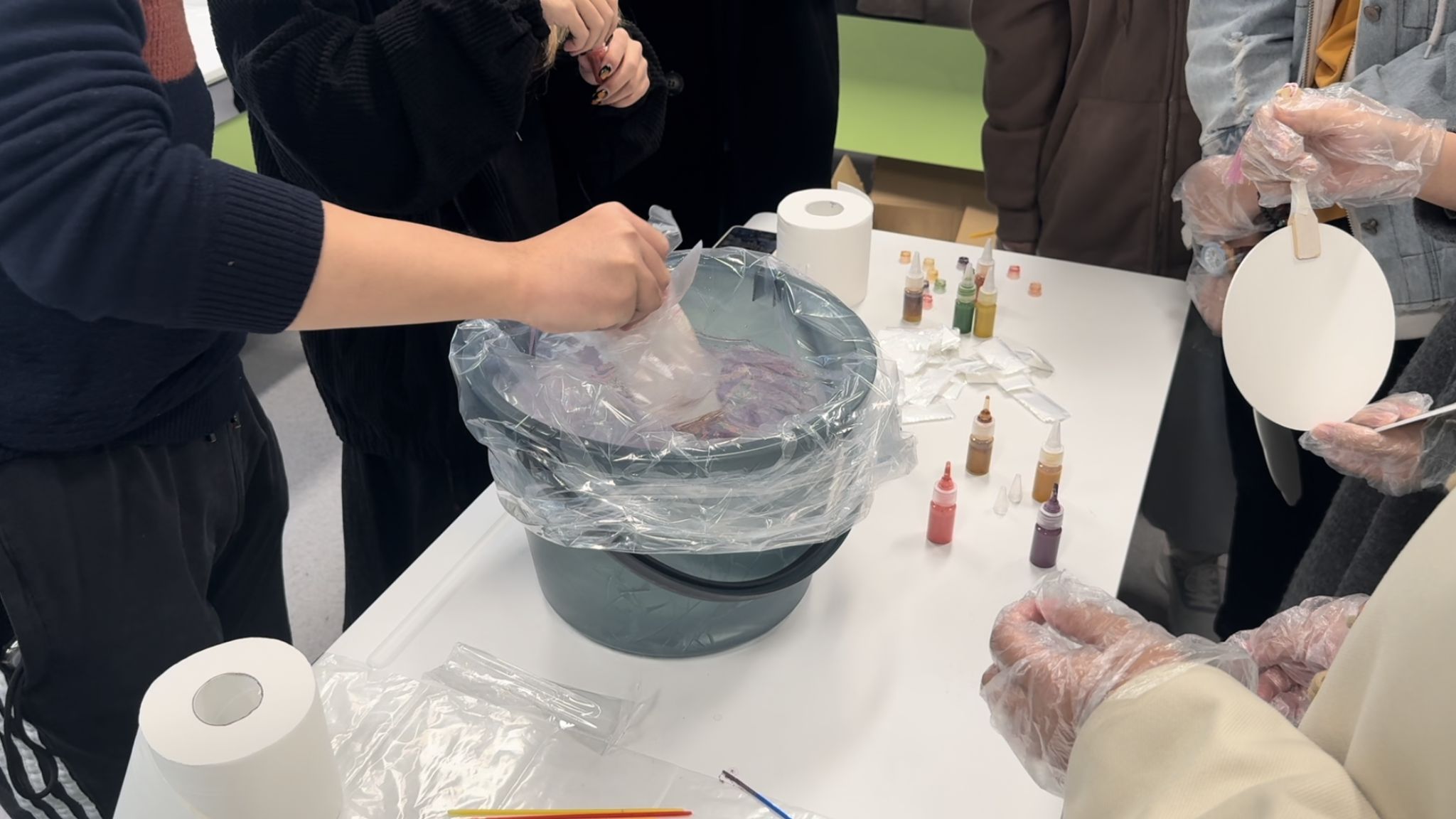 活动伊始,活动主持人蔡东巧从漆扇的历史渊源、传承价值、制作工艺等方面向同学们普及漆扇知识,接着从配色、染色到晾晒介绍了制作漆扇的具体步骤。通过主持人生动的讲解,同学们了解到漆扇不仅仅是一件工艺品,更是工匠精神与文化传承的象征。