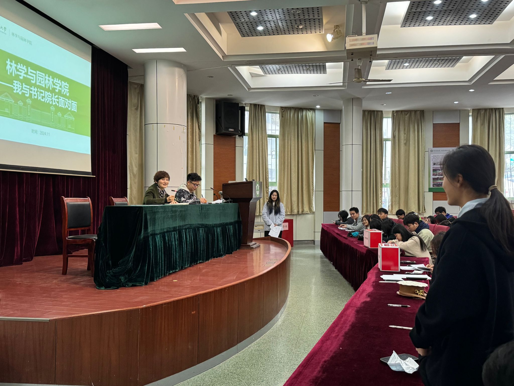 本网讯 11月24日下午,林学与园林学院在林学楼一楼报告厅开展“林院传声筒 我与书记院长面对面”活动。学院党委副书记夏利明、学院相关负责老师及不同年级专业学生代表参加会议。