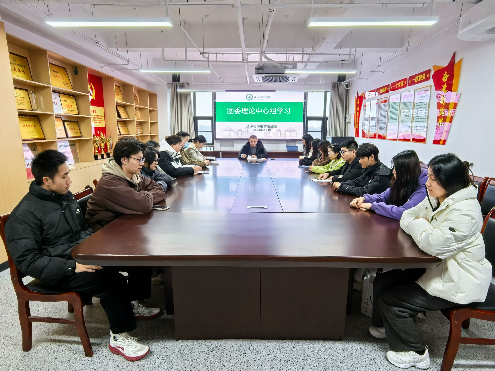 本网讯 12月5日,资源与环境学院在勤业楼2010召开团委理论学习中心组学习会,会议由学院团学工作负责人主持,学院团委理论学习中心组成员参加会议。