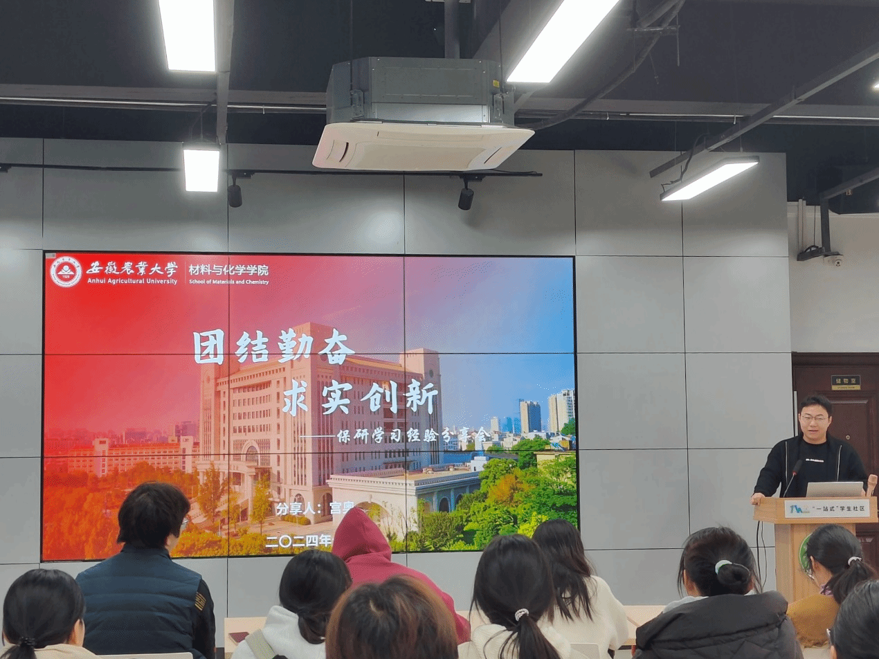 研途点灯,筑梦远航。为进一步加强学院学风建设,切实帮助学生更好地规划大学生涯,实现学业规划目标,材料与化学学院顺利开展了朋辈讲师团系列活动,共有三位21级保研学生、一位24级硕士研究生和30余名本科学生参加本次会议。本次活动采取“分享+提问”的双向互动形式,受邀参与分享的4位优秀同学从大学专业学习、科研竞赛准备、论文发表、院校和专业方向的选择、夏令营经验、面试经验、心态调整等多方面为同学们进行分享,使同学们对保研与考研有了更清晰的认知。本次分享会的成功举办,不仅为同学们搭建了一个交流学习的平台,同时也激发了同学们的学习动力和斗志,明确了自身学业发展目标。