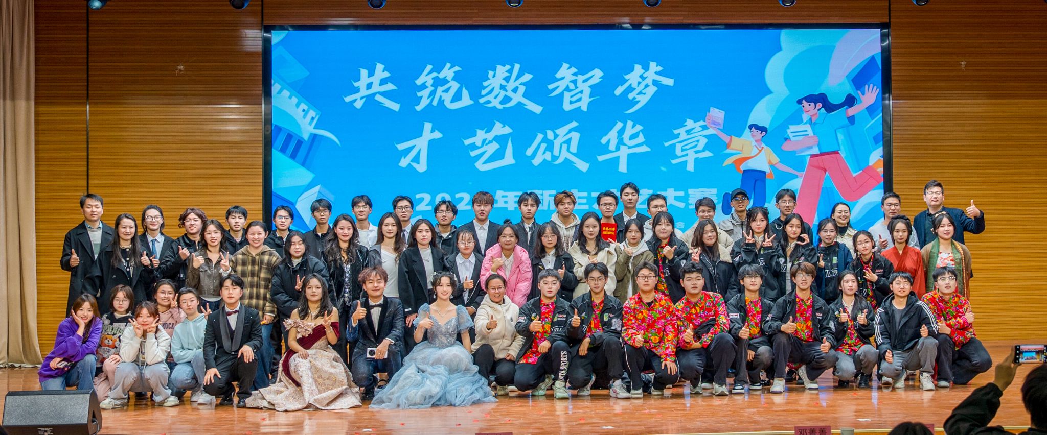 本网讯 为了进一步丰富校园文化生活,展现24级学生的青春风采和无限活力,我院于11月29日晚在欣苑四楼学生活动中心举办2024级新生才艺大赛。学院党委副书记、纪委书记李南飞、副院长张成堂到场观看并为获奖节目颁奖。2024级专兼职辅导员、学生分会代表及300余名24级学生代表现场观赛。