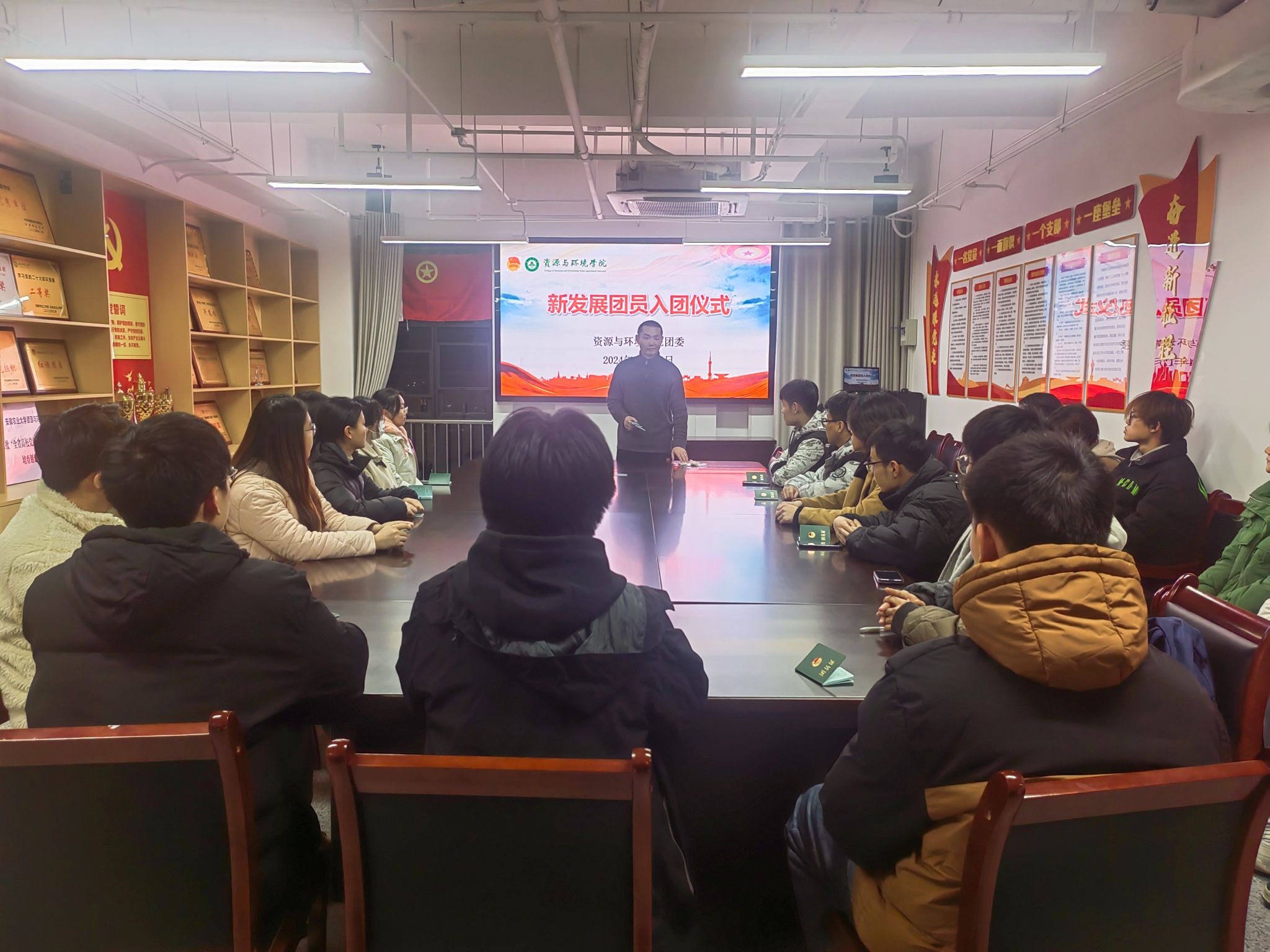 本网讯 为深入学习贯彻习近平新时代中国特色社会主义思想,引导和激励团员牢记入团初心,坚定理想信念,增强新发展团员的组织归属感、责任感和使命感。资源与环境学院于12月12日在勤业楼2010会议室举行了2024年新发展团员入团仪式,学院团学工作负责人及所有新发展团员参加了仪式。