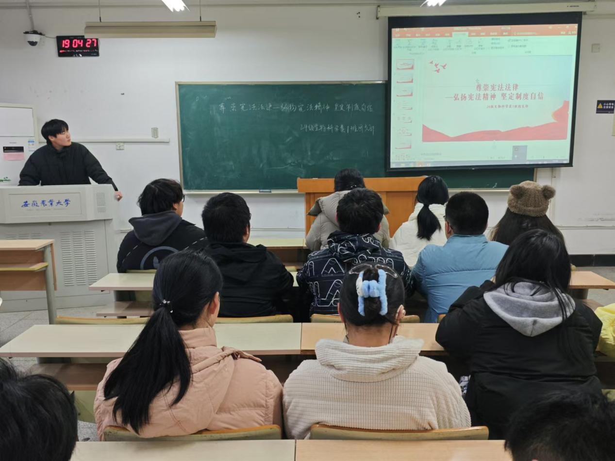 本网讯 今年12月4日是第十一个“国家宪法日”。为学习贯彻习近平法治思想,引导团员青年学习宪法知识,弘扬宪法精神,维护宪法权威,助力团日活动特色发展,生命科学学院积极响应校团委号召,扎实组织全院56个团支部开展了“尊崇宪法法律 弘扬宪法精神 坚定制度自信”主题团日活动。
